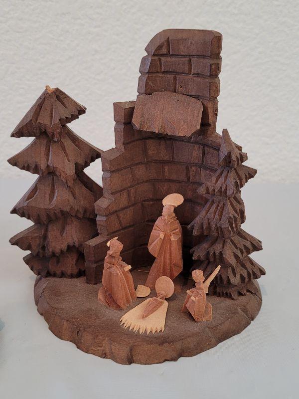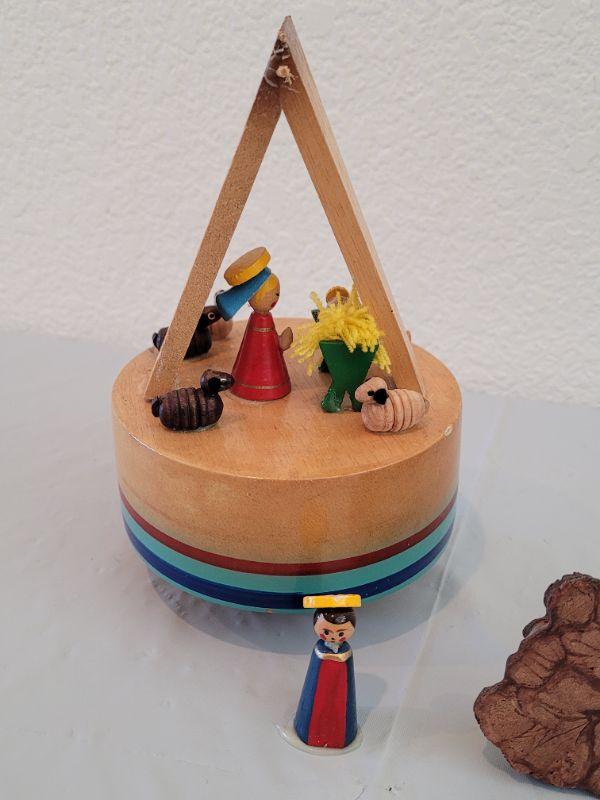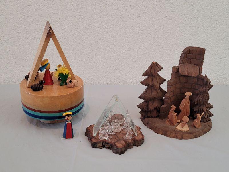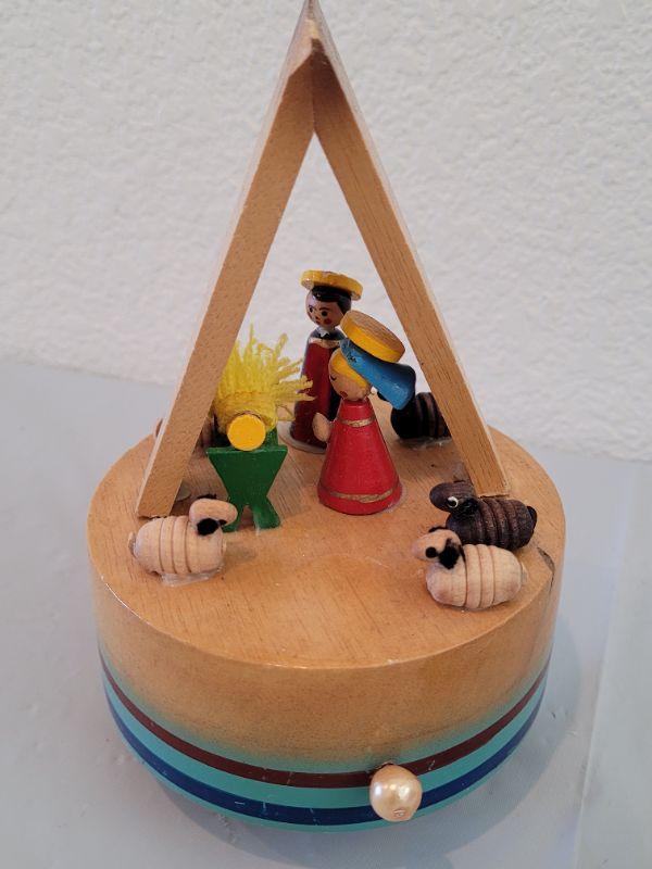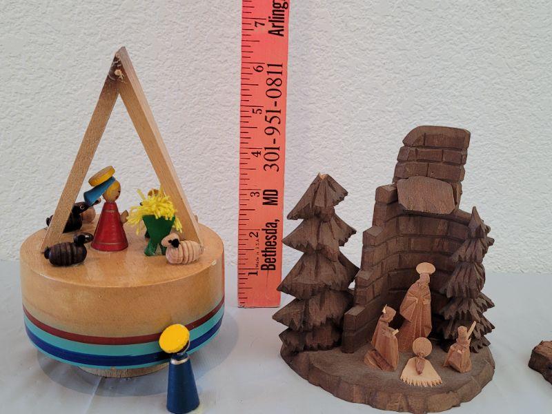 Lot 279: Miniature Glass, Oberammergauer Schnitzarbeit Wood and Rotating MusicalNativity
