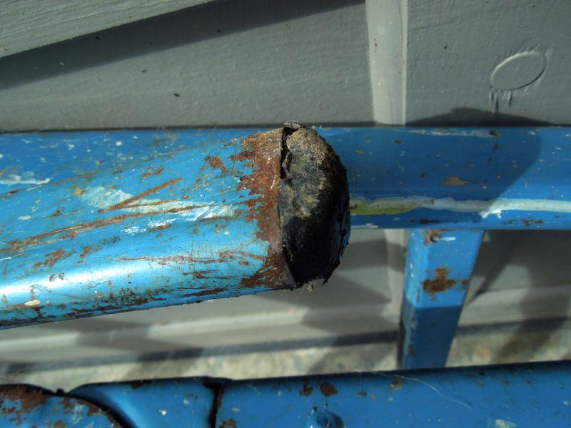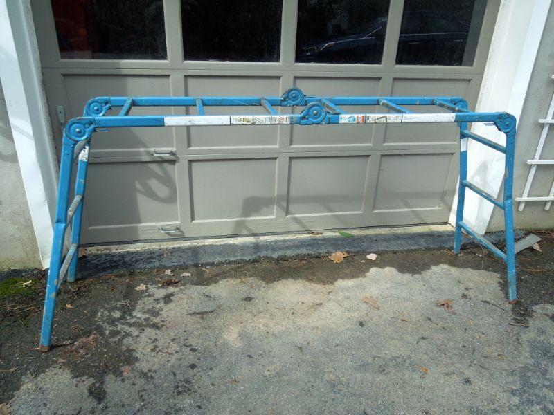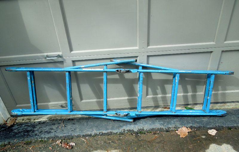 160" L x 21" W total length. Unique locking design at joints that move in two directions. One foot shows signs of rust. Folds easily.