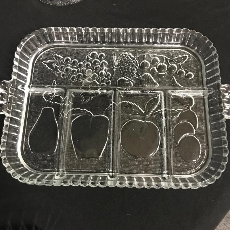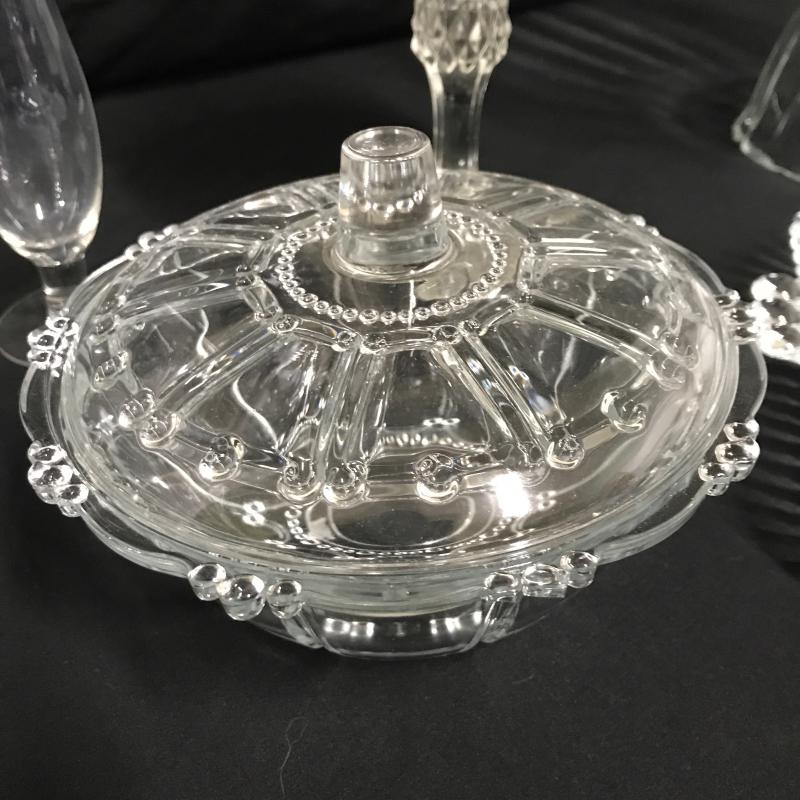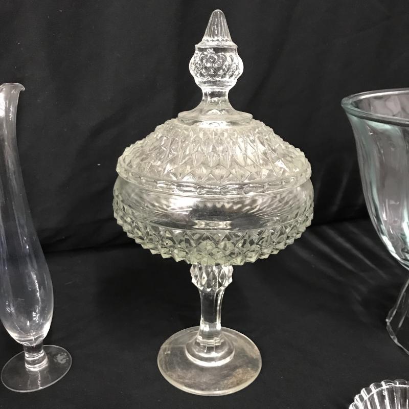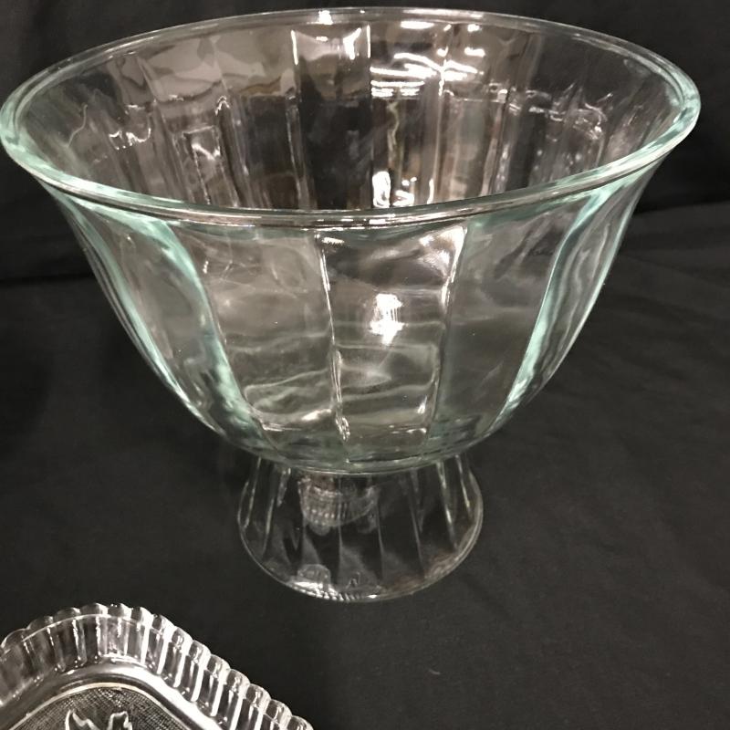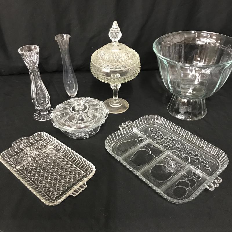 Vases, covered dishes, platters and large bowl. Misc. glass pieces. Tallest covered dish is 6”d x 12.5”h. Large bowl is 10”d x 9”h. Local Pick up only in Maggie Valley, NC.