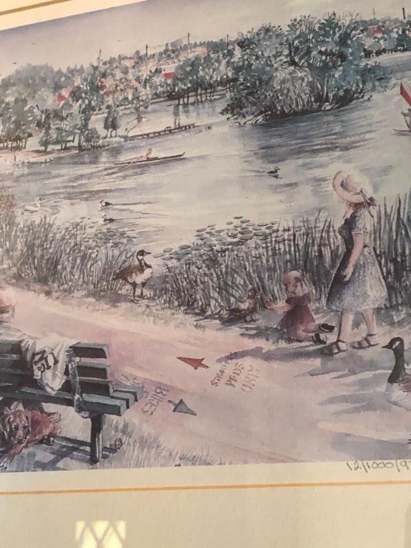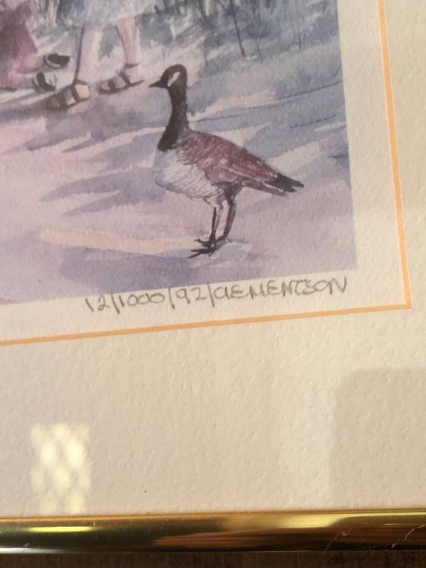 Pair of serigraphs 16in x 12in - artist: Clementson - barn scene #255/750 1990, duck pond - #12/1000 1992