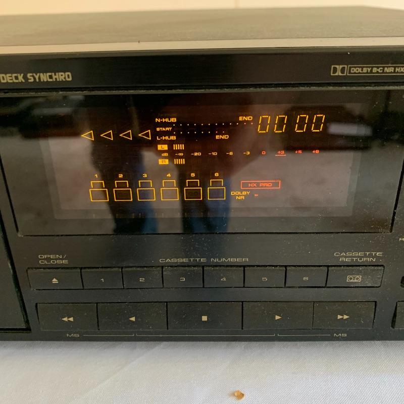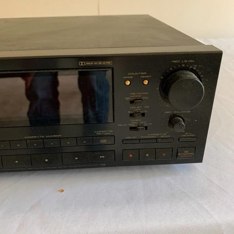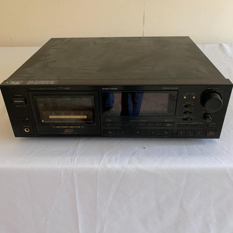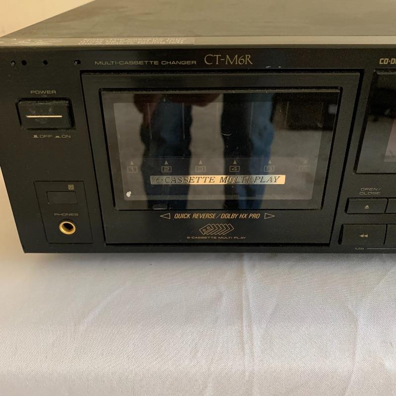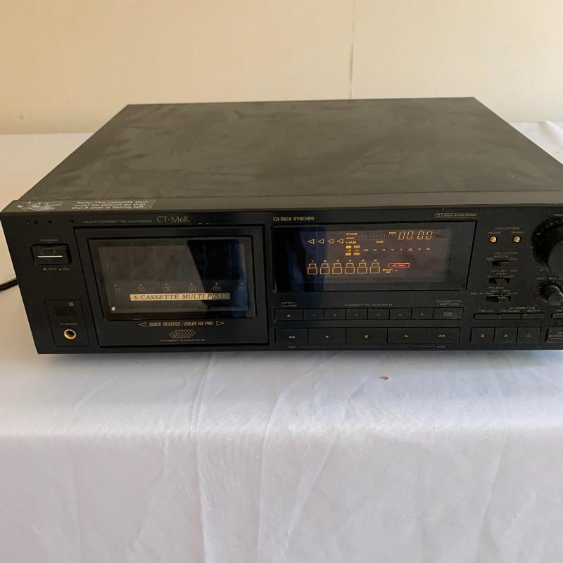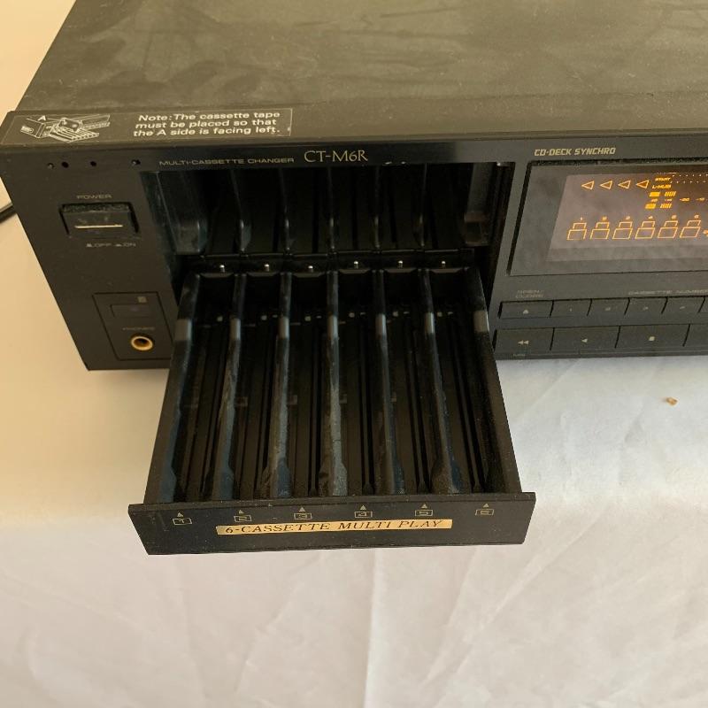 Here is a Pioneer CT-M6R six cassette player. The unit powered on when tested and the cassette open/close door functioned perfectly.