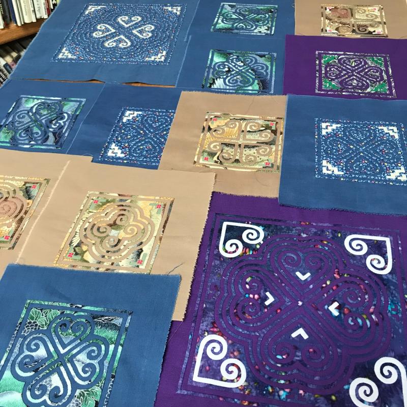 Lot includes thirteen gorgeous reverse appliqué quilt blocks that could each be framed. Very detailed. Smaller blocks are approx. 7” x 7”. Larger two are approx. 11” x 11”. See pics. Shipping available.