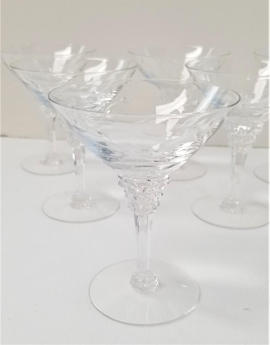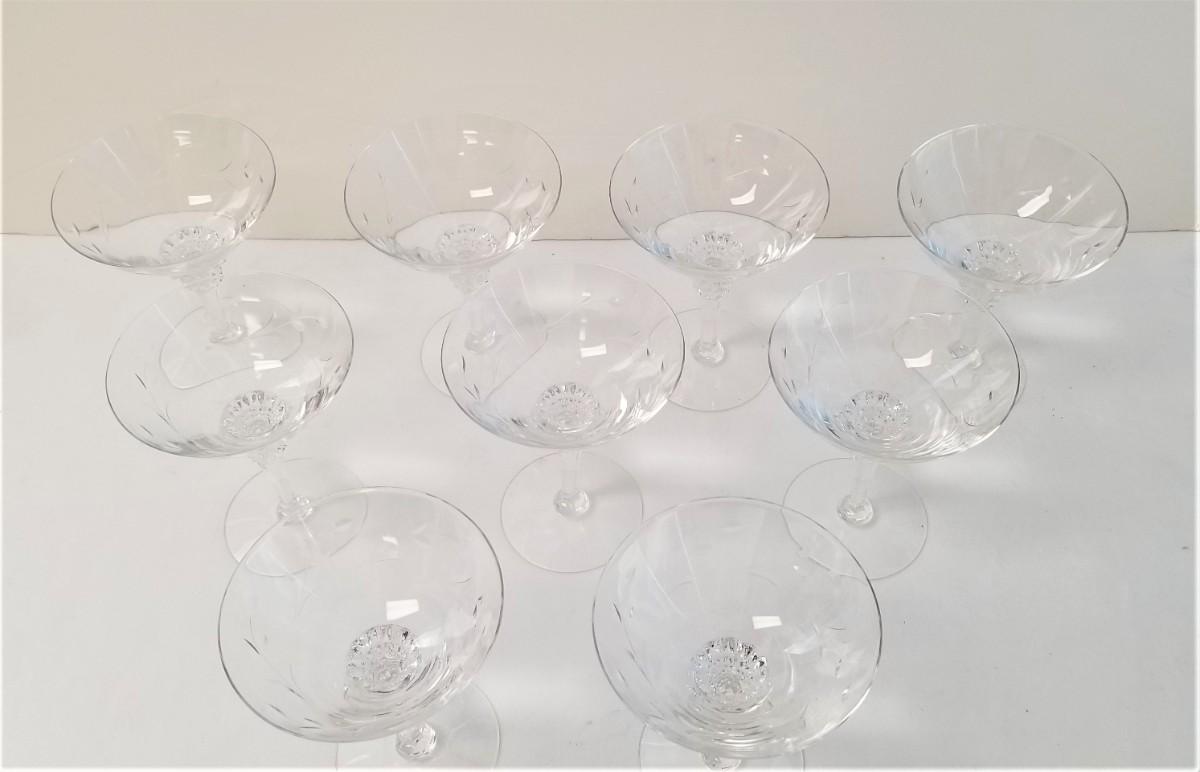 Lot #27  Set of 9 Crystal Etched Vintage Champagne Glasses