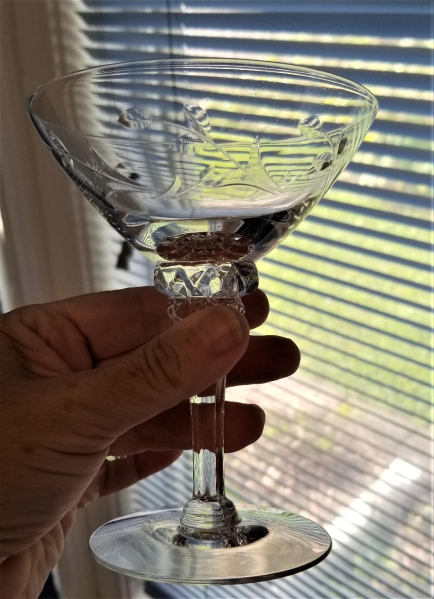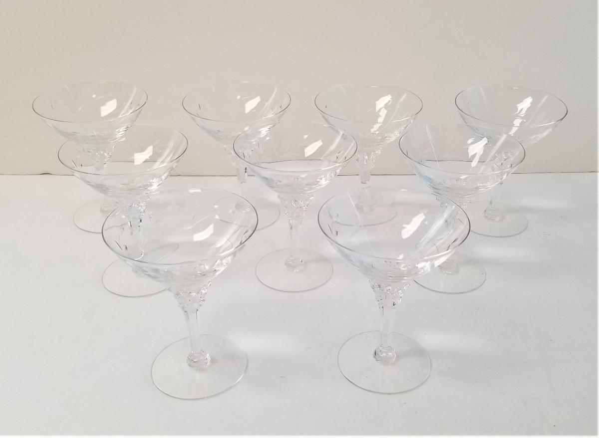 Lot #27 Set of 9 Crystal Etched Vintage Champagne Glasses