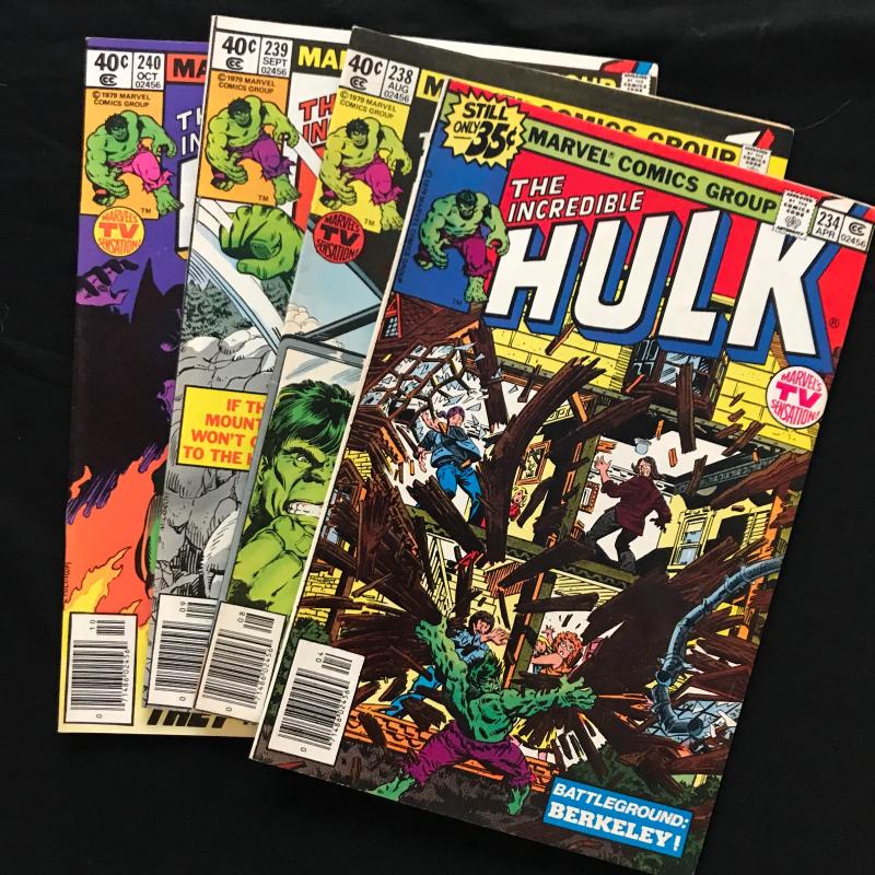 Two large issues of "The Hulk" by Marvel No. 16 and No 17, Fifteen Issues of "The Incredible Hulk" by Marvel includes 1979 Annual, all four issues of 4-issue series of "Iceman" by Marvel, and more. See pictures. 29 total issues in this lot. Fits into one Priority box for shipping or local pick up in Asheville, NC.