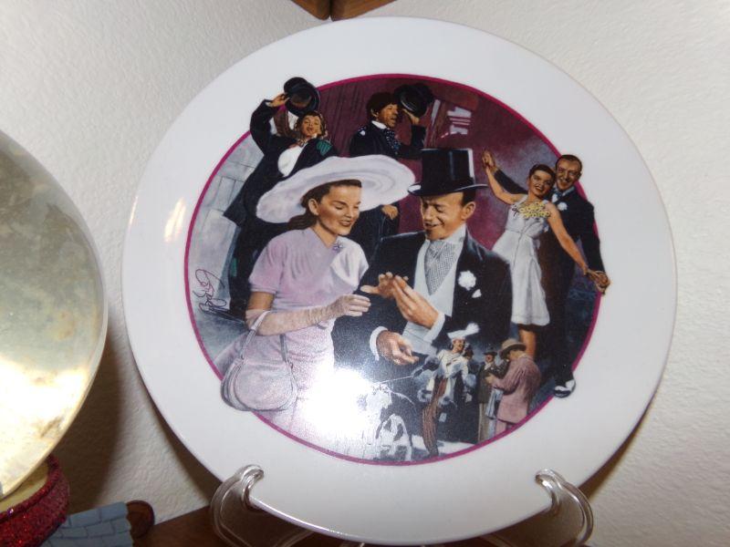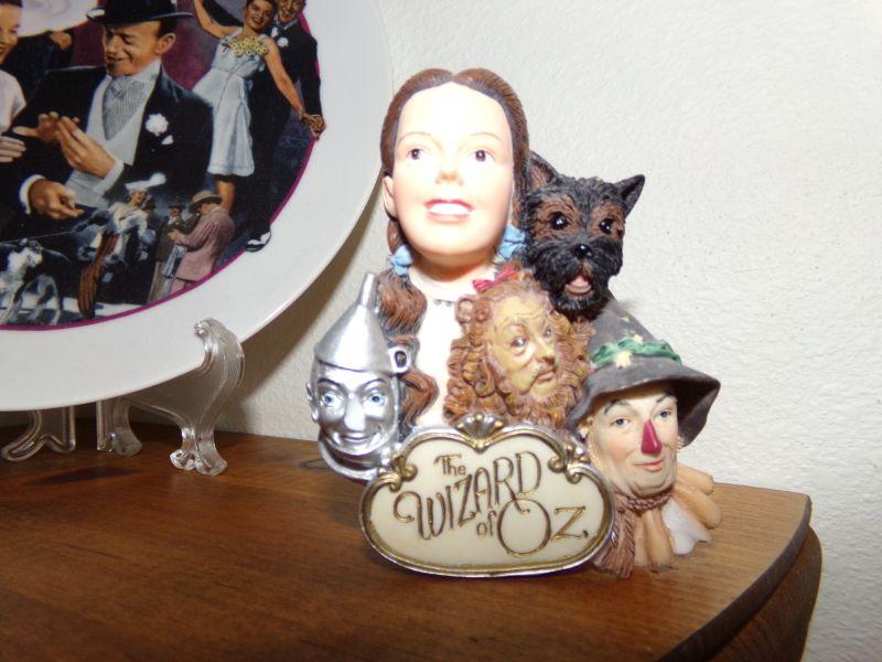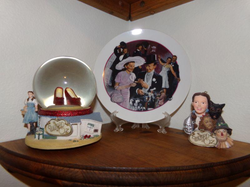 SANFRANCISCO MUSIC BOX CO SNOW GLOBE WITH DORTHY AND RUBY RED SLIPPERS. ORNAMENT AND COLLECTORS PLATE ALL THEMED ON JUDY GARLAND/WIZARD OF OZ