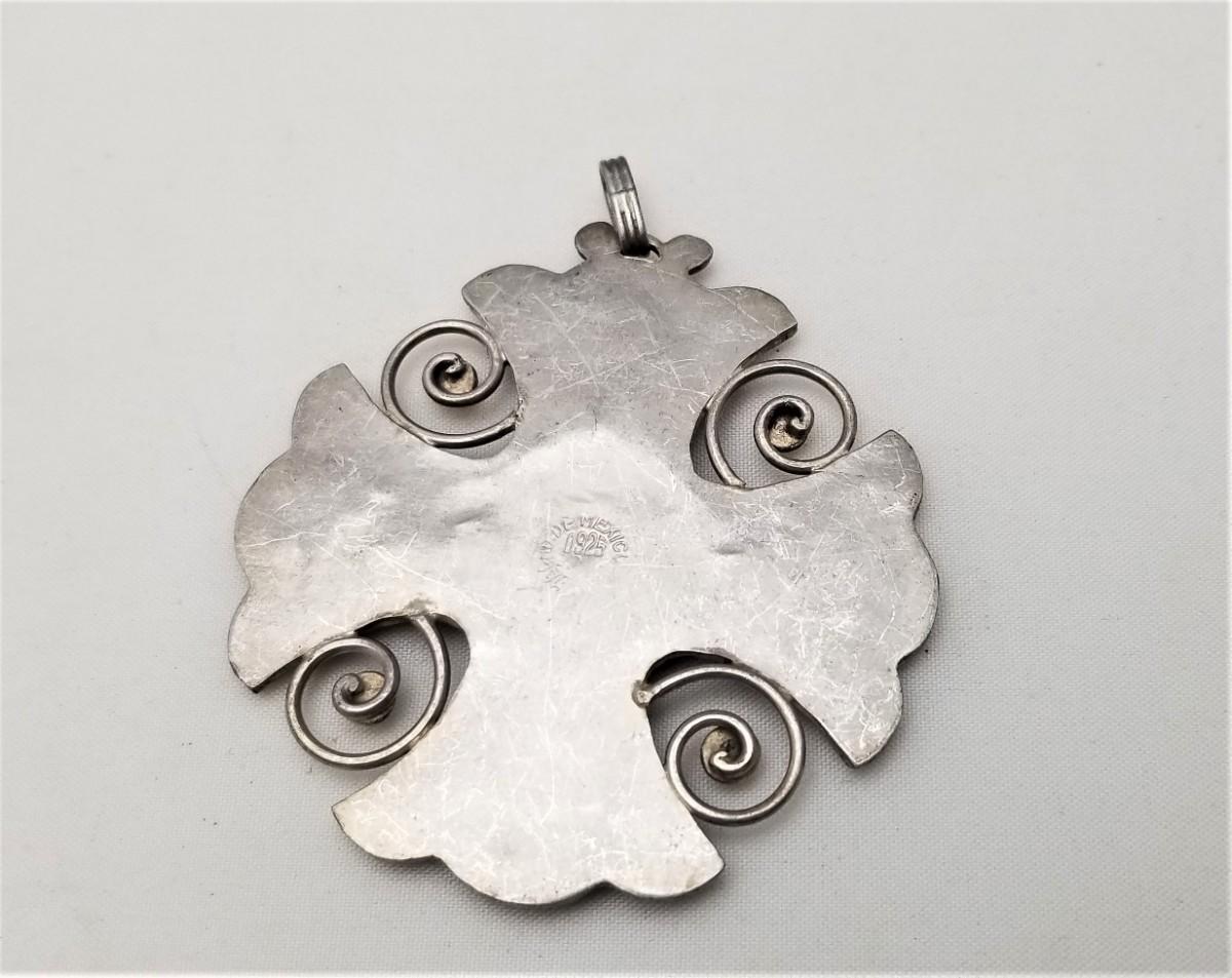 Lot #27  Vintage Mexican Sterling Silver Pendant set with Southwest Green Turquoise