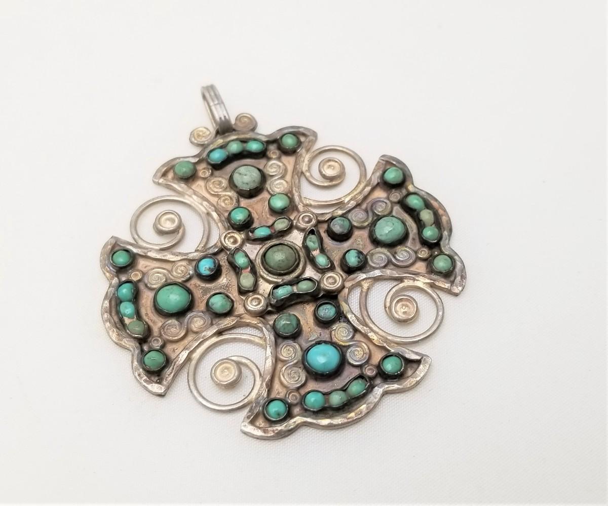Lot #27 Vintage Mexican Sterling Silver Pendant set with Southwest Green Turquoise