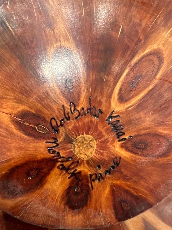 Large round handcrafted wooded bowl Kauai 2” across