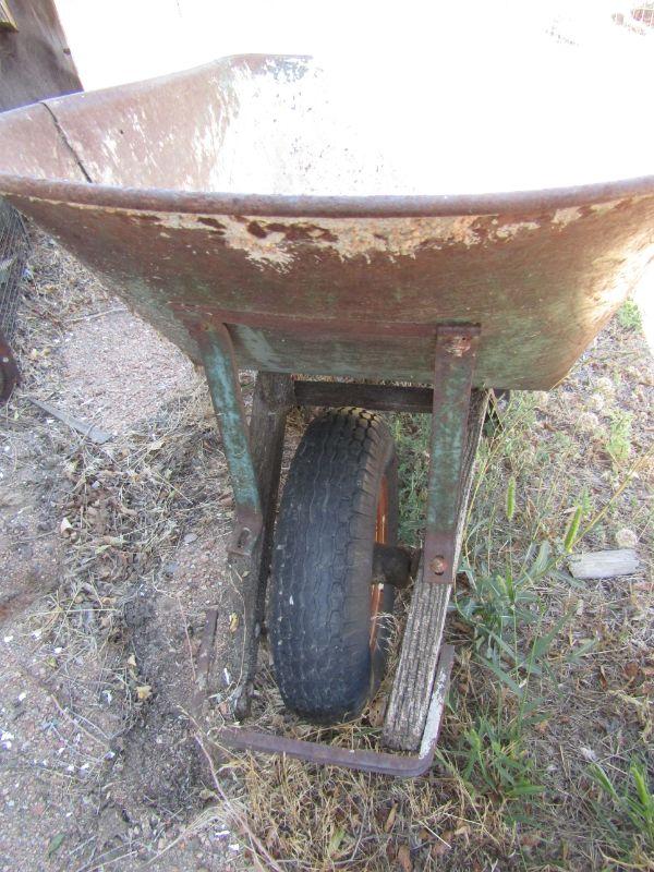 BUCKET IS GOOD ON WHEELBARROW BUT IT NEED A NEW TIRE
