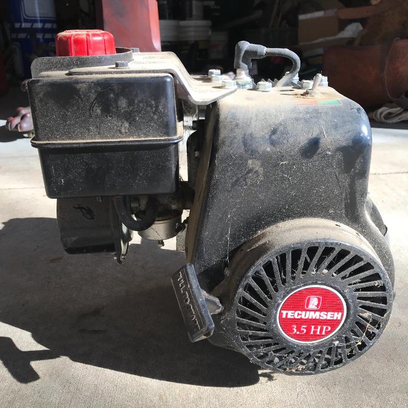 Small engine model H35 by Tecumseh in great shape! Previous owner states it was very lightly used. This unleaded gasoline engine is dusty as it has been stored in a garage. Use this 3.5 HP engine for all your smaller jobs! The gasoline tank is currently empty and we are unable to test it at this time. Local pick up only.