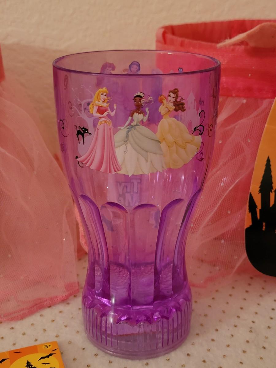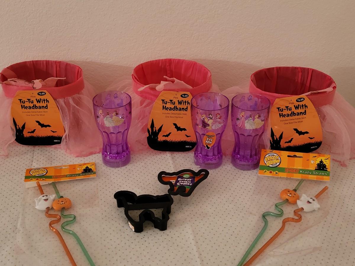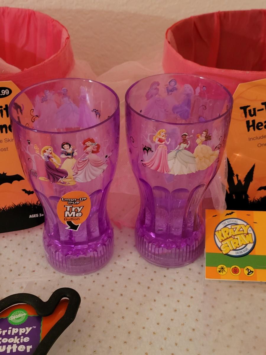 Lot 270: (3) Halloween Tutu Trick or Treat Buckets, Light Up Princess Cups, Straws and Cookie Cutters