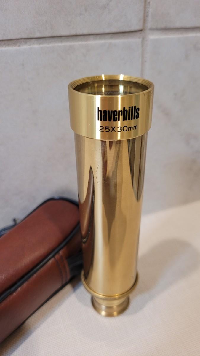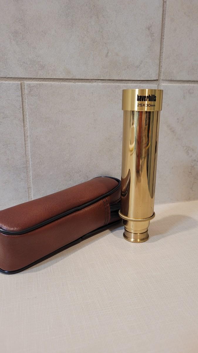 Lot 270: Vintage Brass HAVERHILLS 25X30mm Maritime Telescope w/ Case