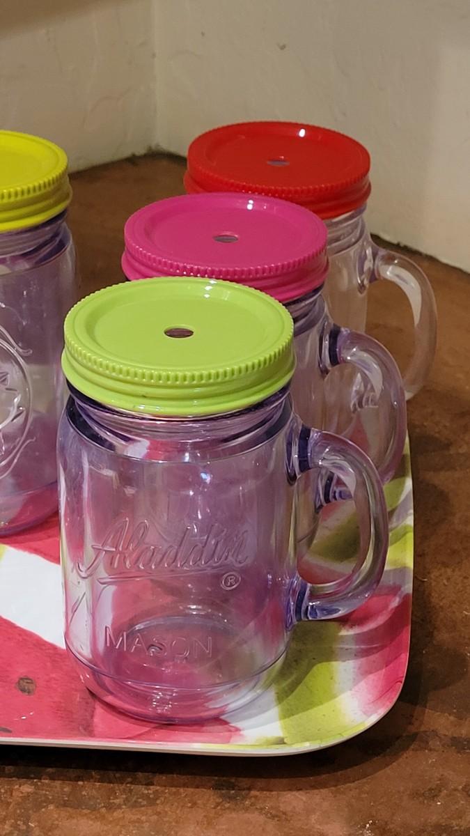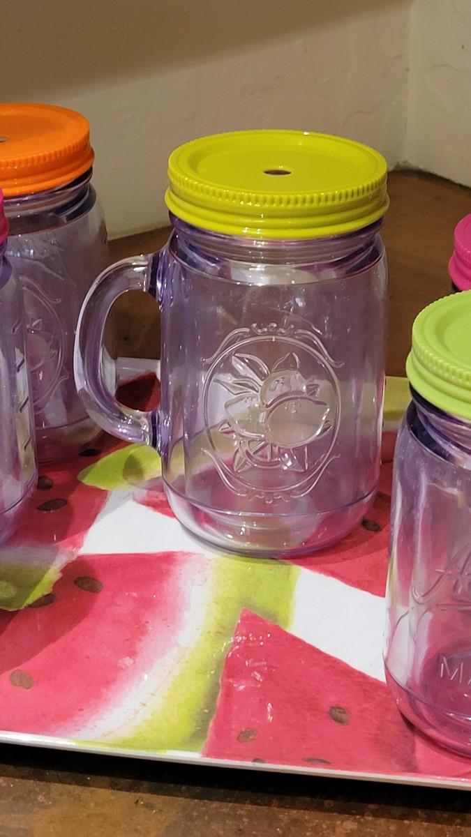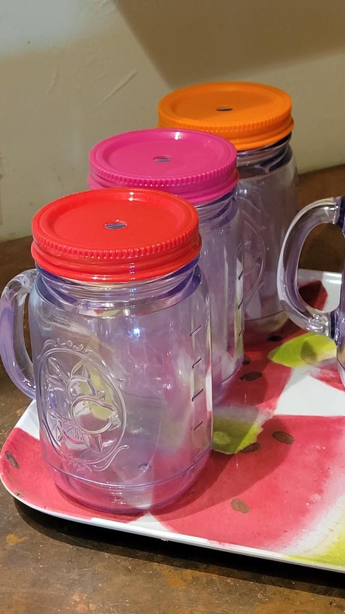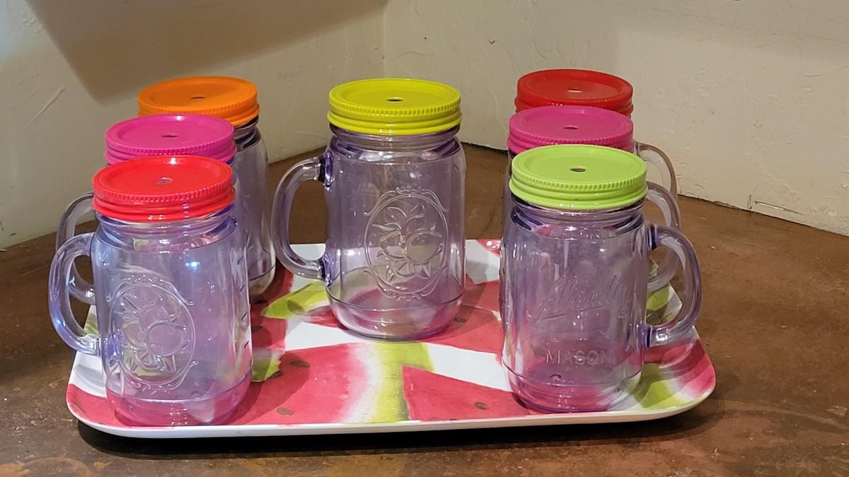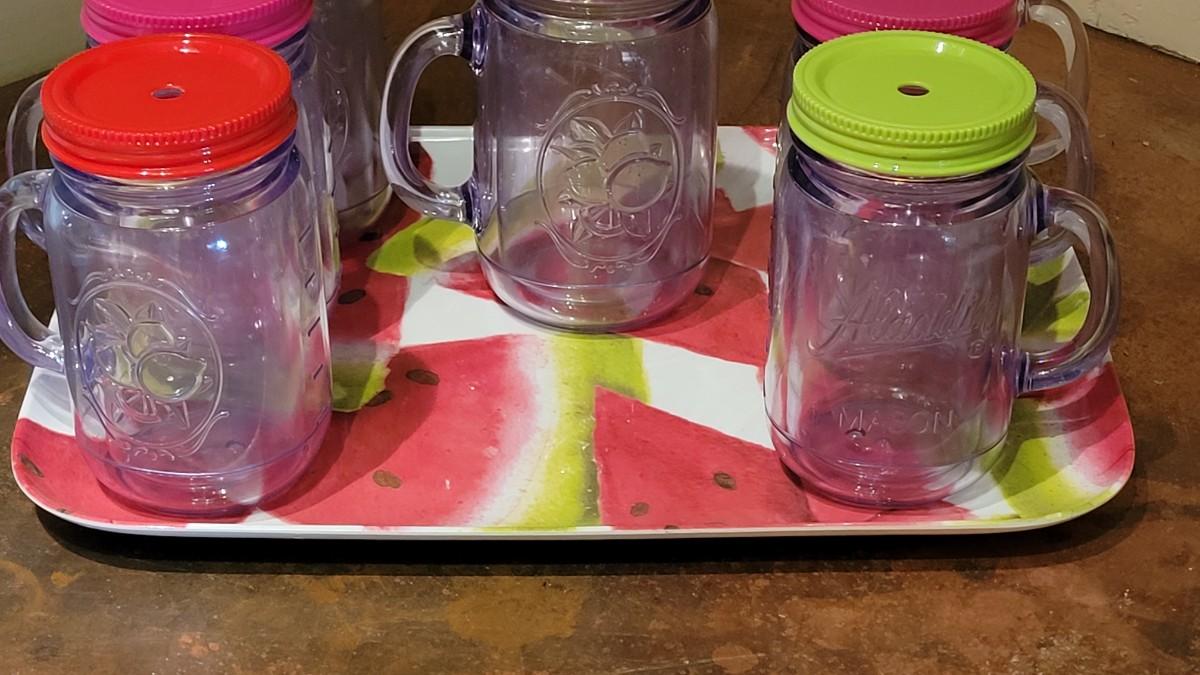 Lot 270: Watermelon Tray & Plastic Mason Jar Cups with Lids