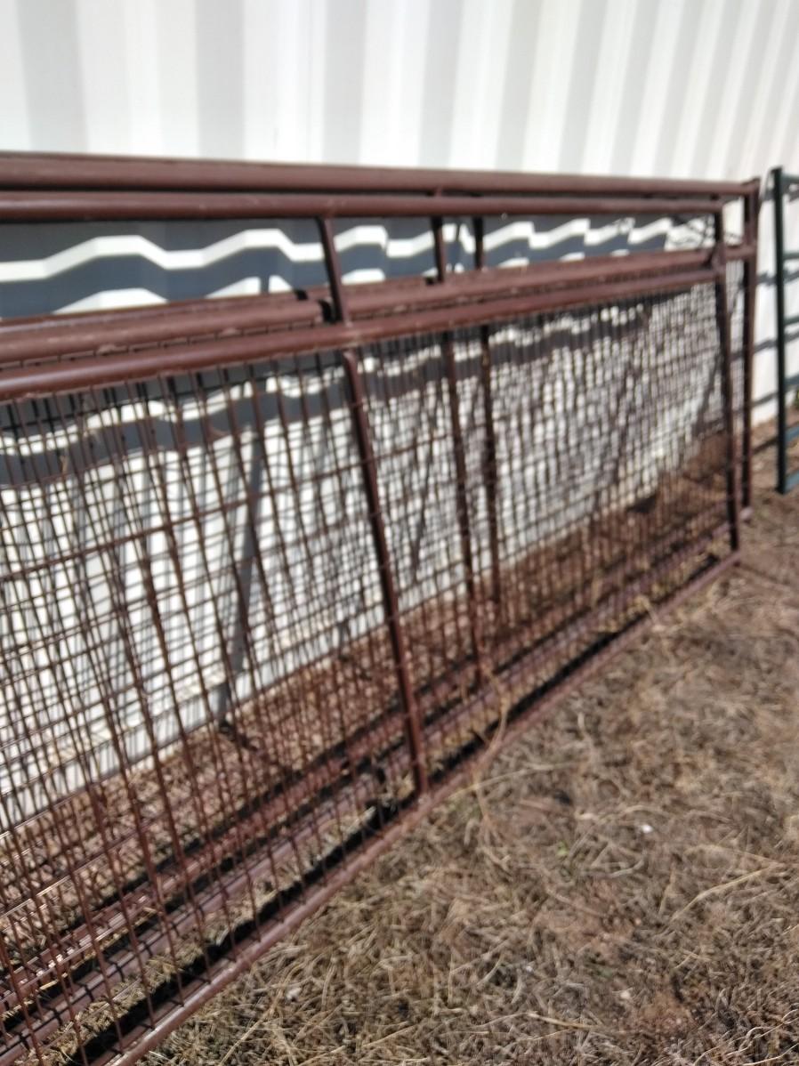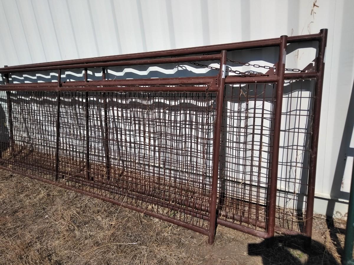 HW BRAND 12' LIVESTOCK GATE WITH METAL MESH BASE, COMPLETE WITH HINGE HARDWARE (There are three gates total in this sale, first come first choice)