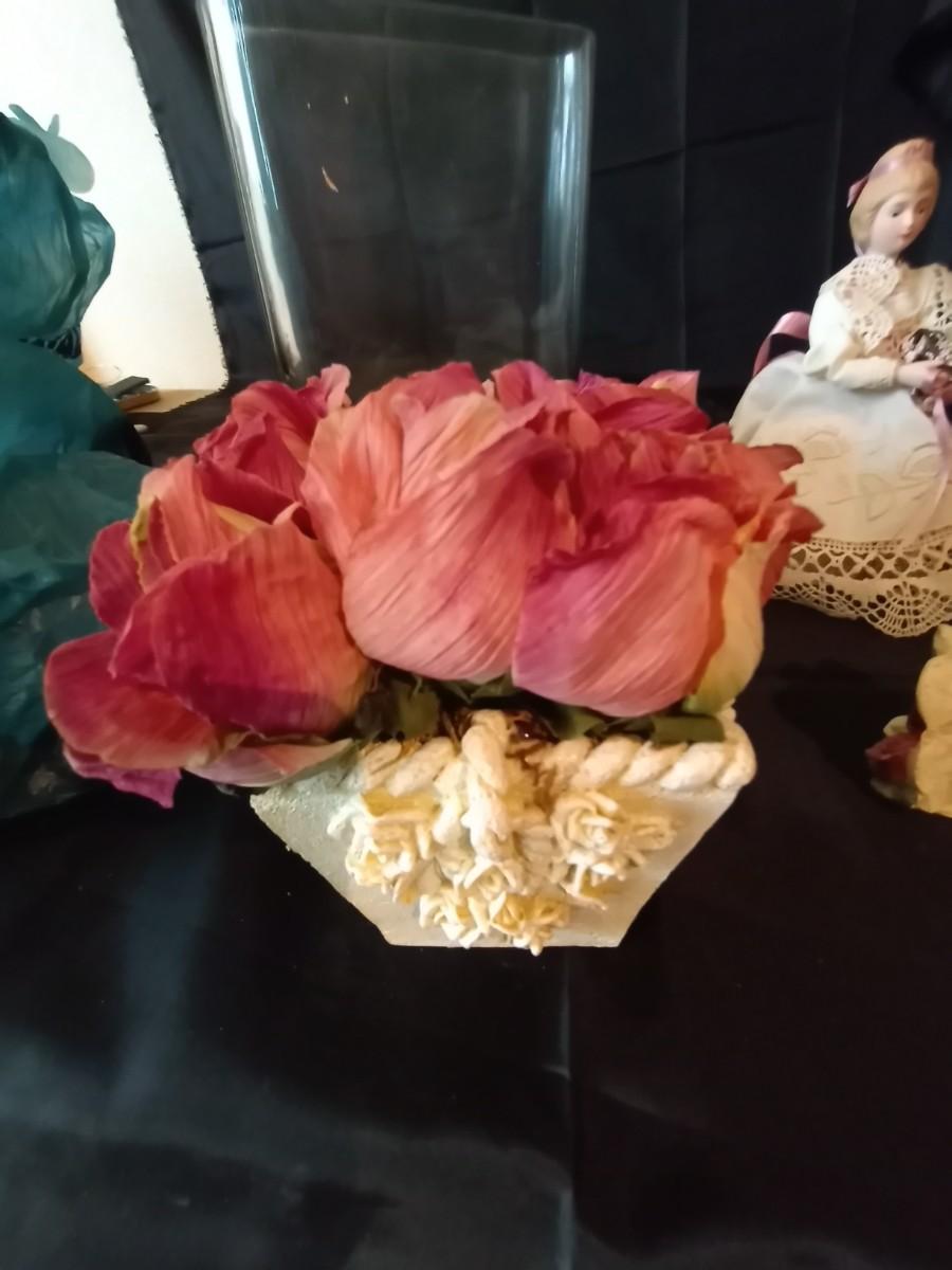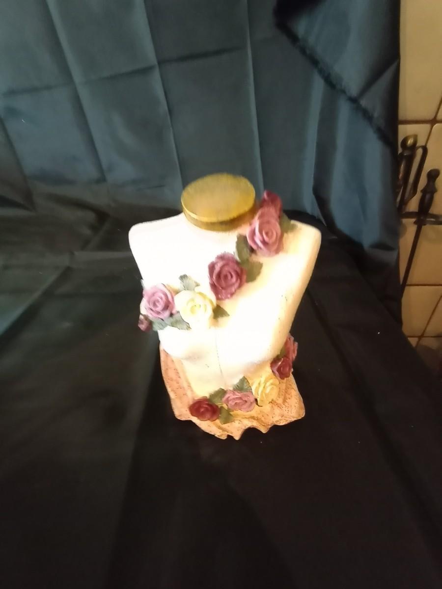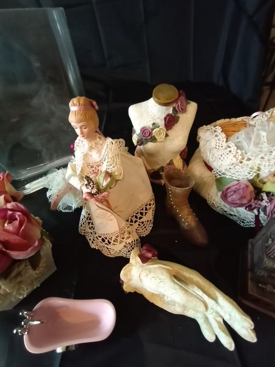 CLOCK TUB MEASURES 5"-CERAMIC BASKET WITH FLOWERS- LADY IN GOWN AND OTHER