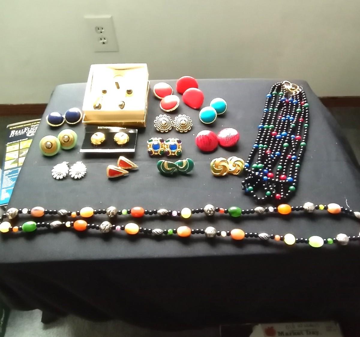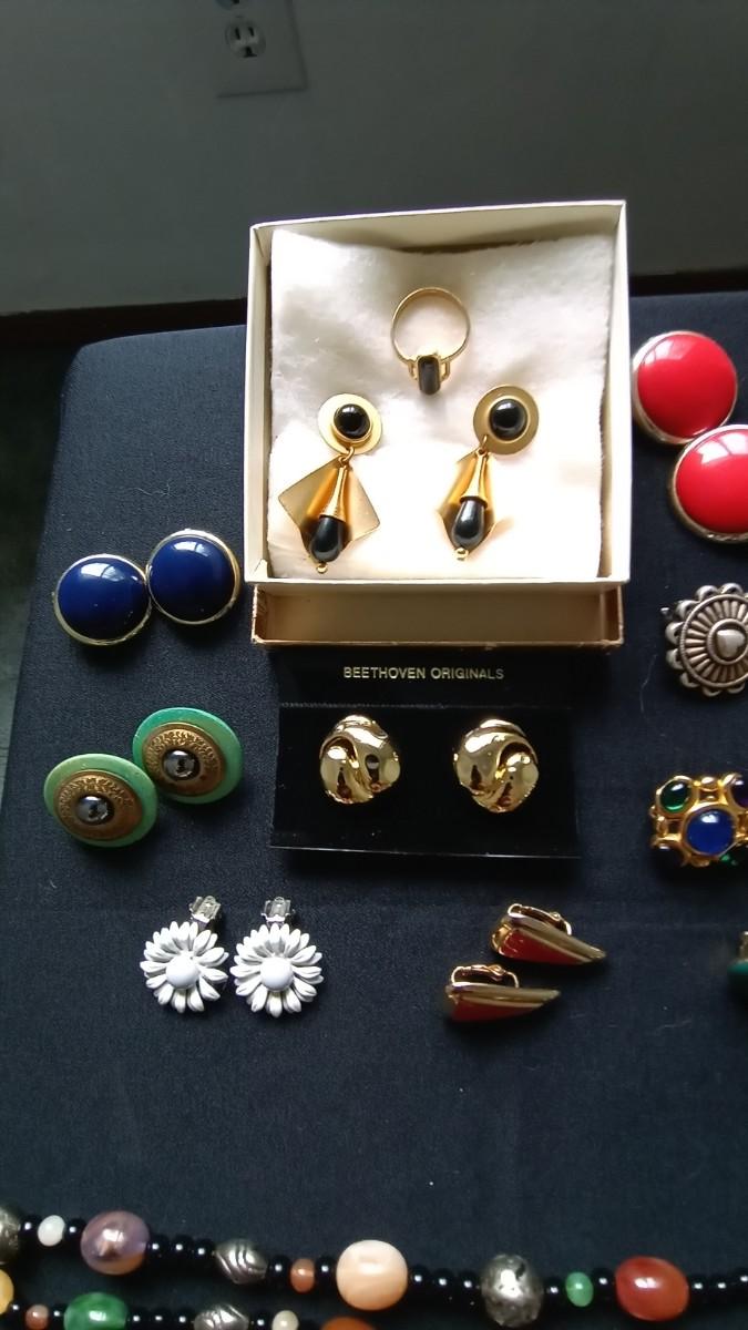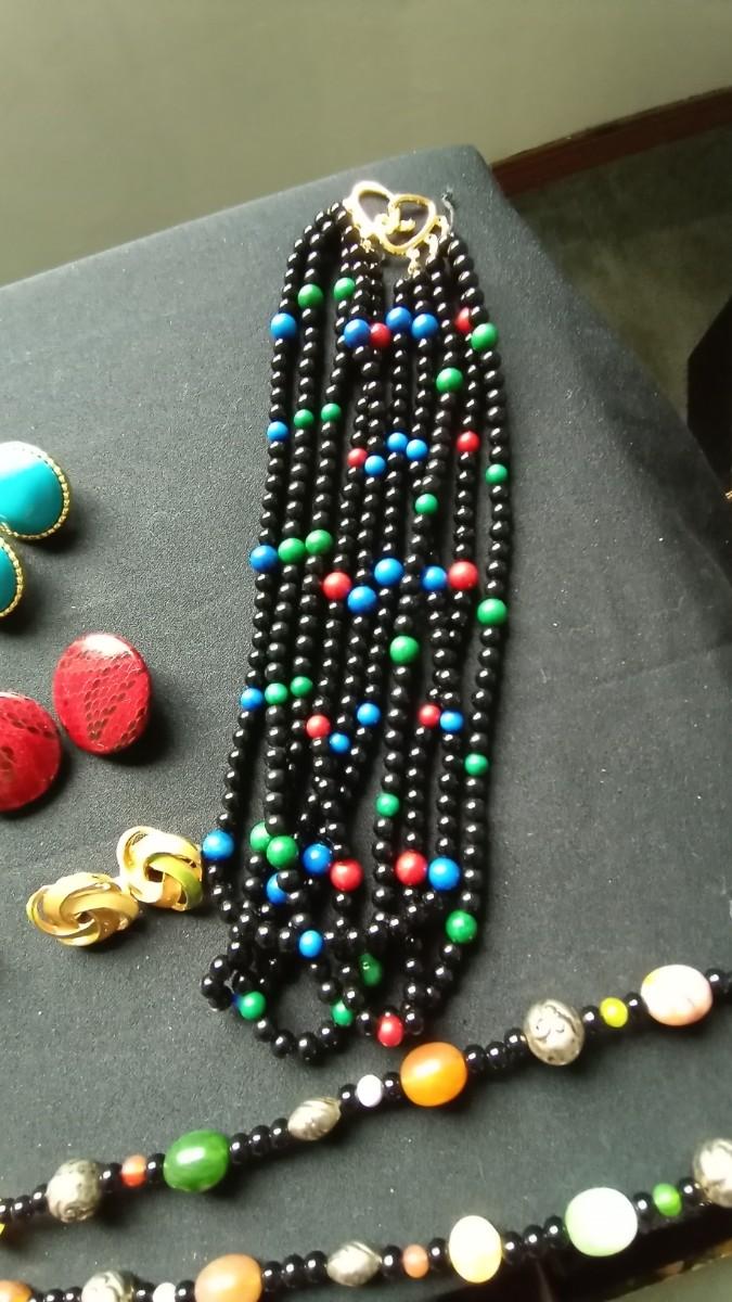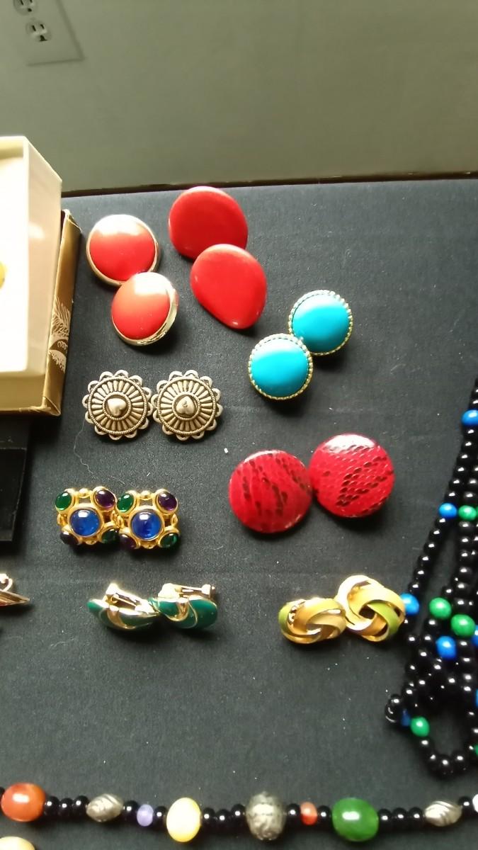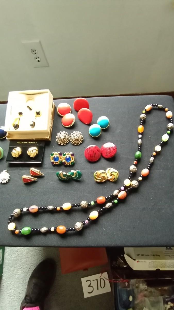 LOT 370  CLIP EARRINGS AND BEADED NECKLACES