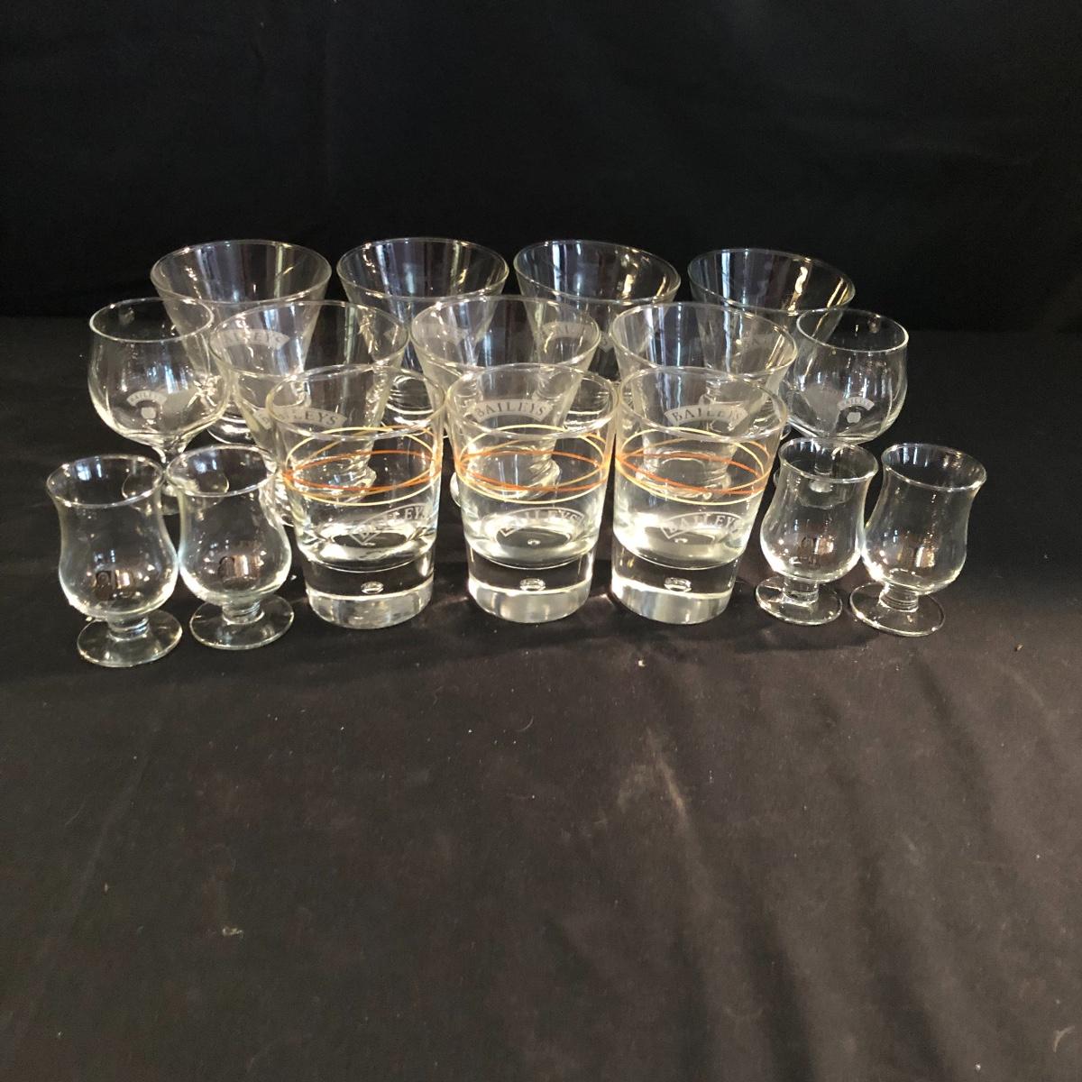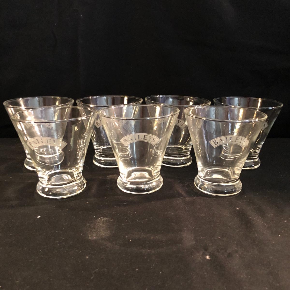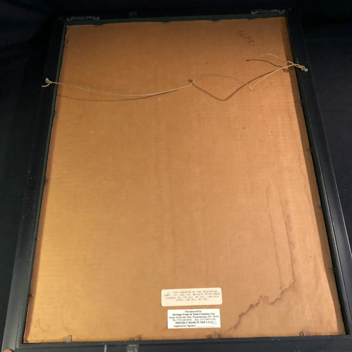 This lot offers a great selection for your bar or home. The lot includes a Baileys mirror, four metal Baileys containers, Baileys glasses in four different styles all with Baileys on the glasses. The frame measures 20” x 26”.