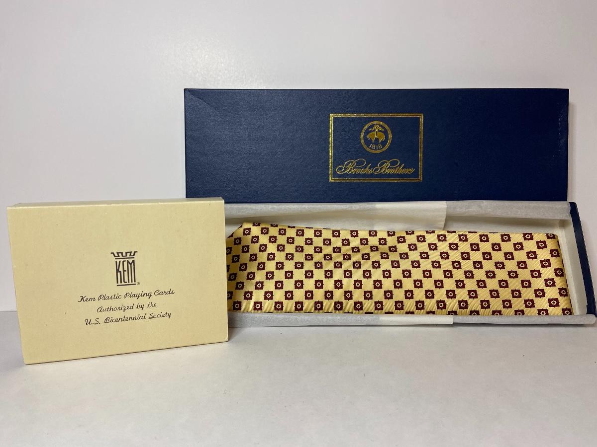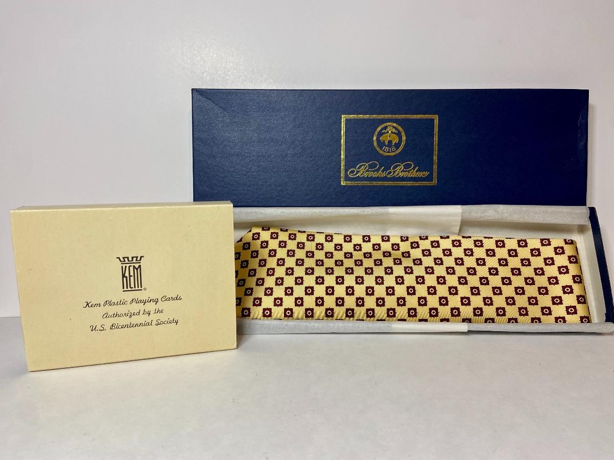 NIB Brooks Brothers tie and playing cards. Please see all pictures as they are the best representation of the items. The pictures show condition, measurements if taken, and what is included in the lot. Due to the large amount that we photograph and the time frame, we are not always able to take measurements. All items unless noted, are pre-owned and have been used. If you purchased furniture, you must bring help. We do not allow one person to carry large furniture out on their own. Bring help, tools and a truck for the safety of our client’s homes, and your personal safety. Company policy. Thank you