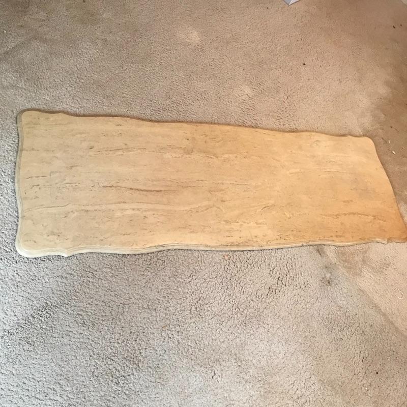 Gorgeous cream and brown marble top will add class to your existing or future furniture! Piece measures approximately 61.5” x 22”. There is a small chip on the underside that isn’t noticeable from the top, see photos. Also a spot of presumably adhesive is noted in photos. Marble is very heavy and top is located upstairs. Please bring help to load. No shipping.