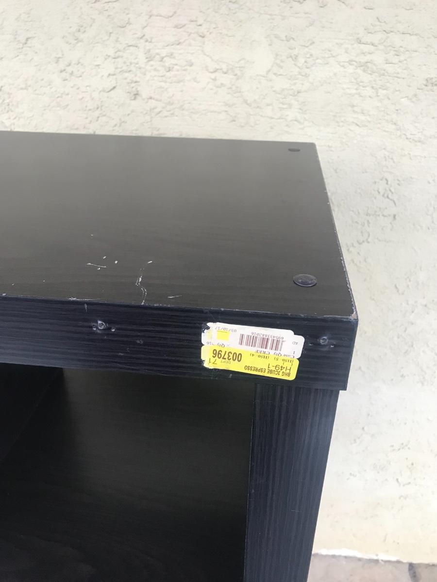 Cube Bookshelf.. Functional but lots of dings, dents and scratches. Please see all pictures as they are the best representation of the items. The pictures show condition, measurements if taken, and what is included in the lot. Due to the large amount that we photograph and the time frame, we are not always able to take measurements. All items unless noted, are pre-owned and have been used. Please bring packing materials for your items. If you purchased furniture, you must bring help. We do not allow one person to carry large furniture out on their own. Bring help, tools and a truck for your personal safety. Company policy. Thank you.