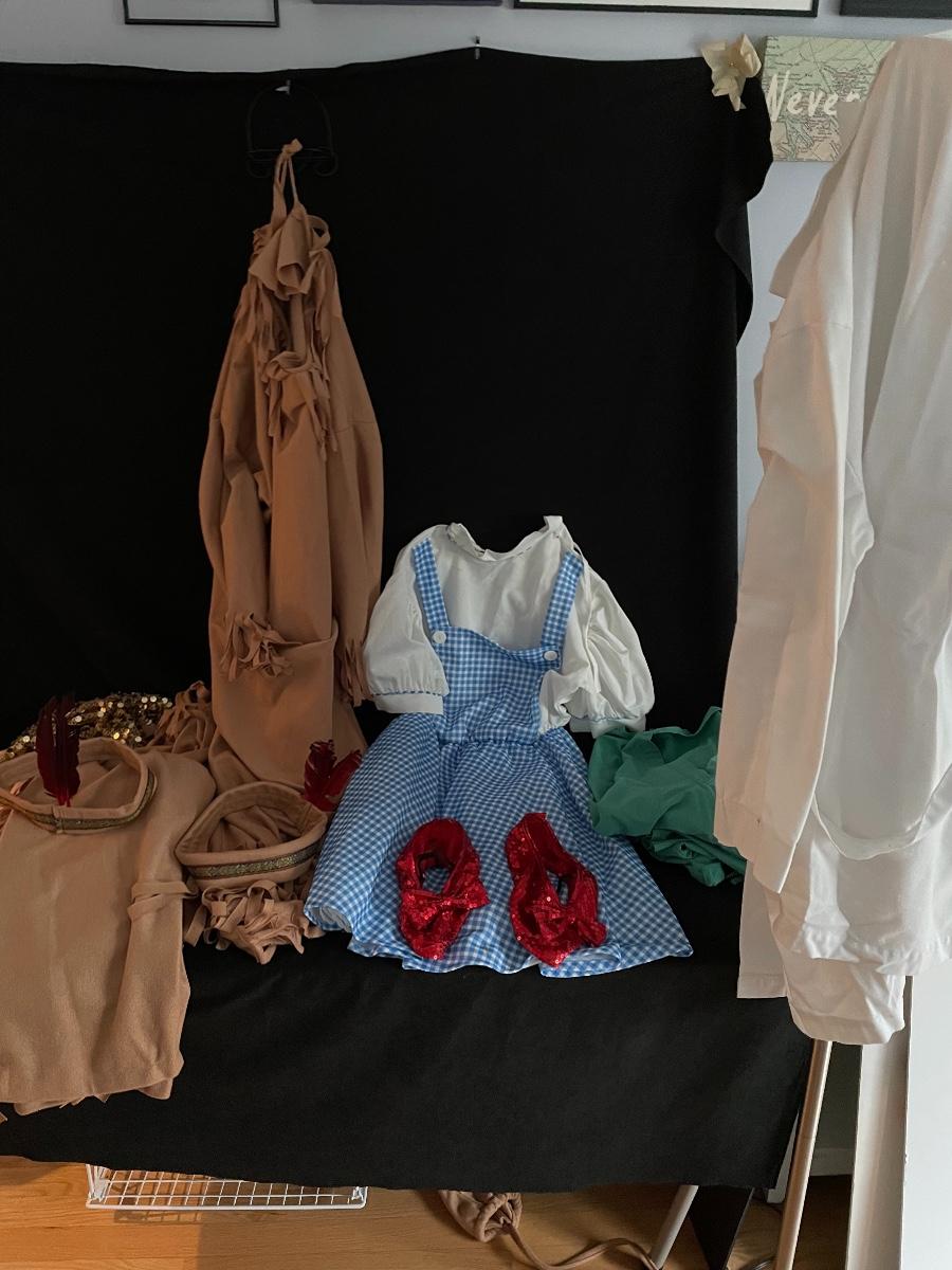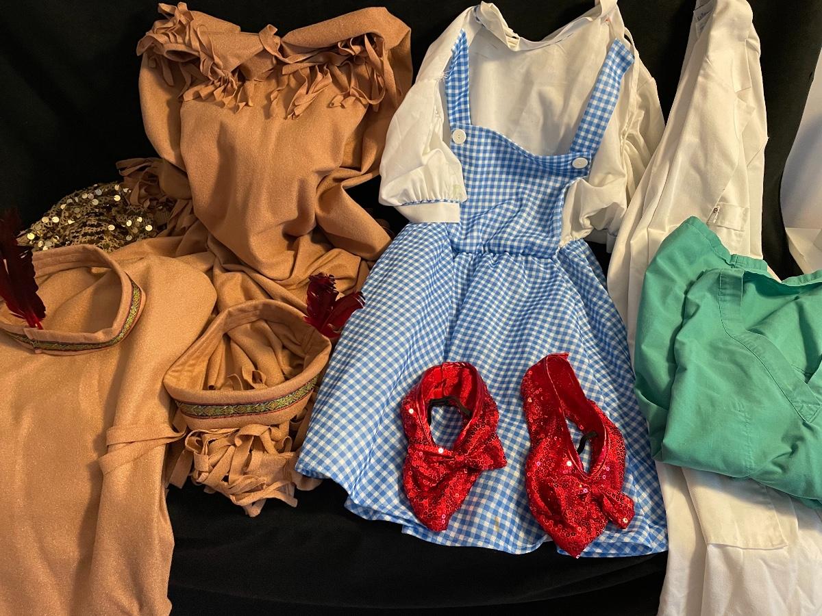 Scrubs lab coat, Dorothy costume, and to Native American costumes