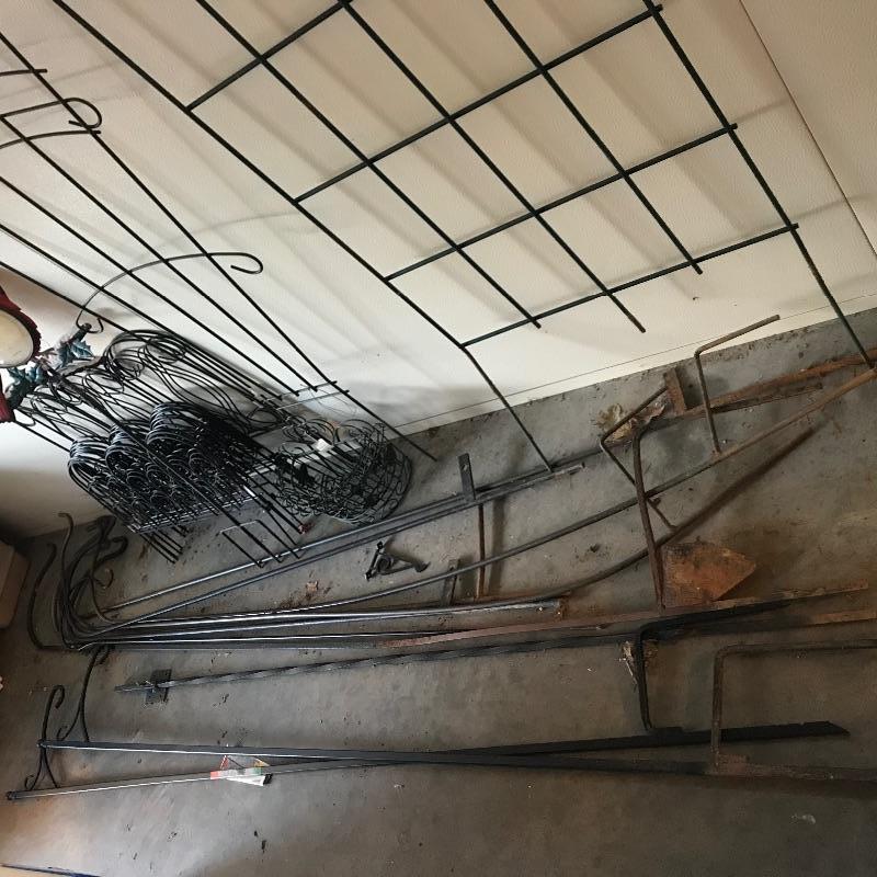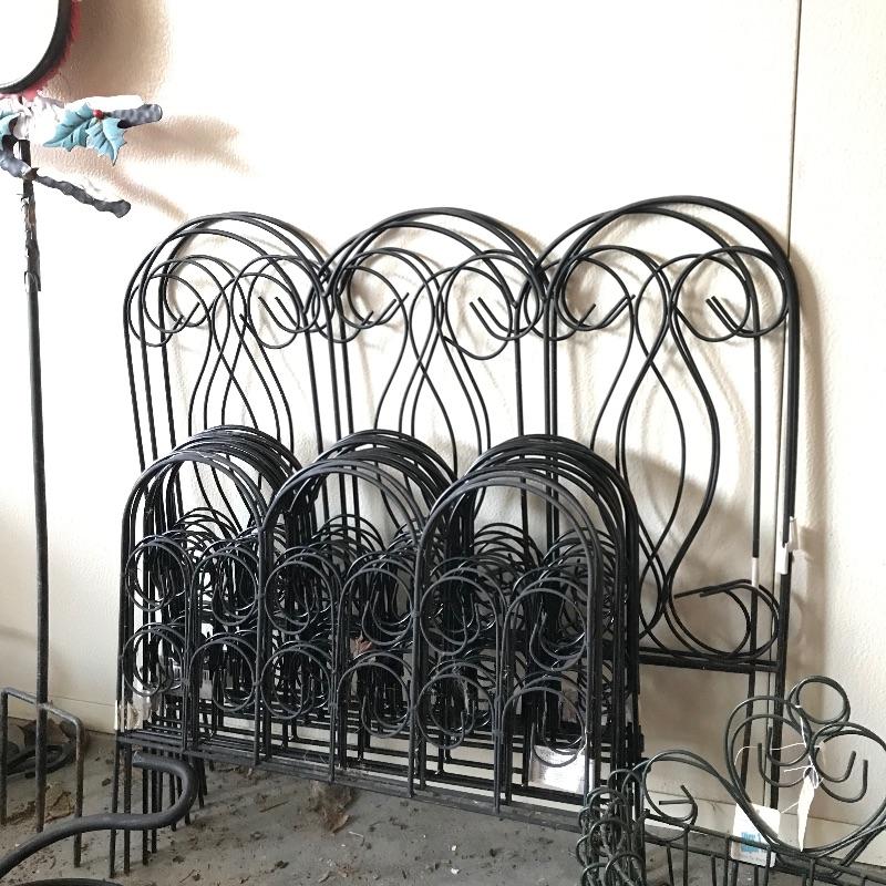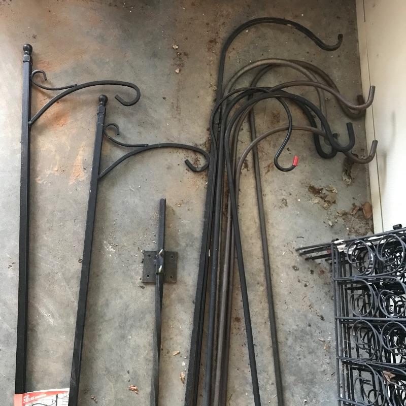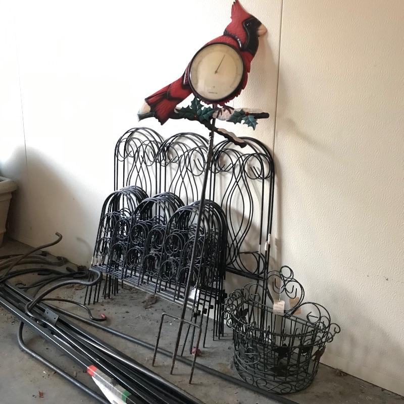 Great assortment of metal niceties for your outdoor space. This large assortment includes two large vine trellises, the tallest being 83”. A lovely cardinal thermometer on a metal stake, eleven metal shepherd’s hooks for hanging planters or bird feeders, the median size is roughly 84”. Lot also includes three large and eleven smaller metal fencing panels, the larger measuring approximately 2’ x 2’. See photos. No shipping.
