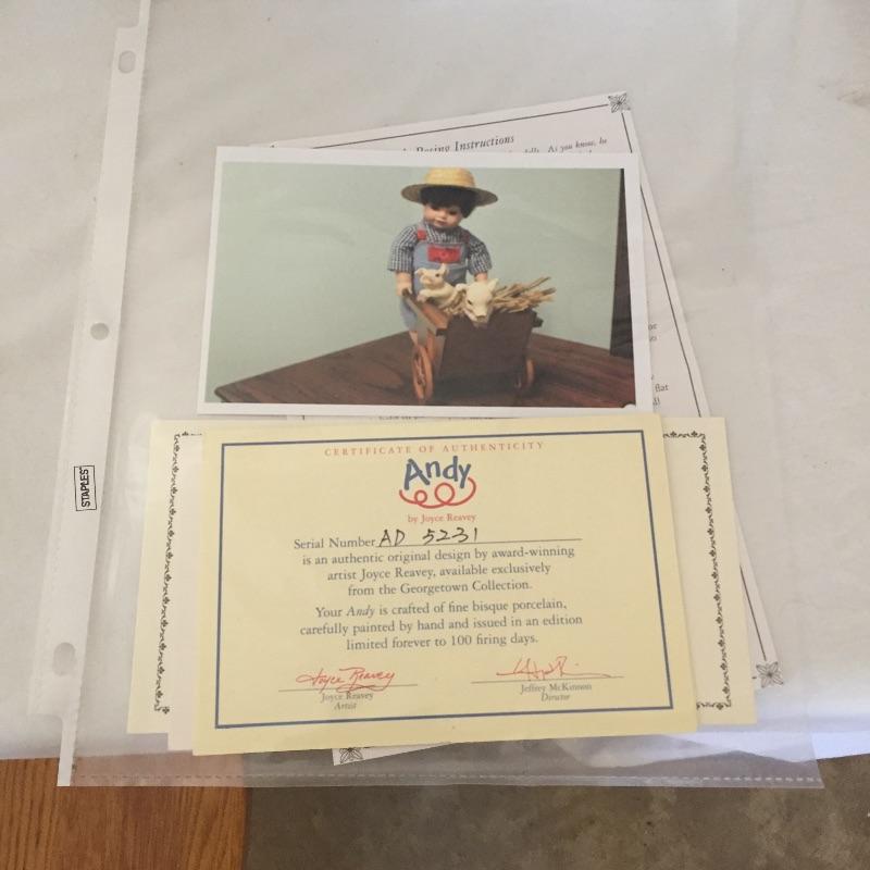 Song of Innocence Collection Dolls By Georgetown Collection includes Andy taking pigs to market and Eric in high chair both are musical. Both have COA.
