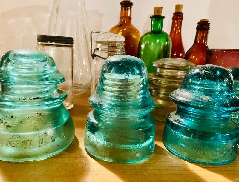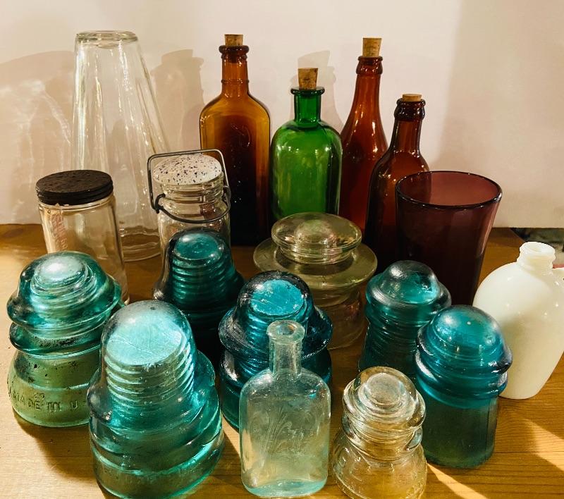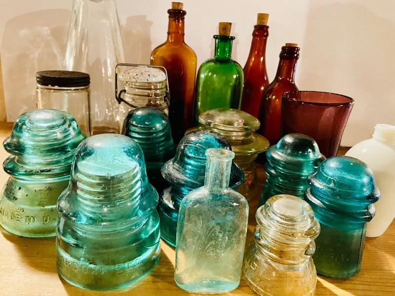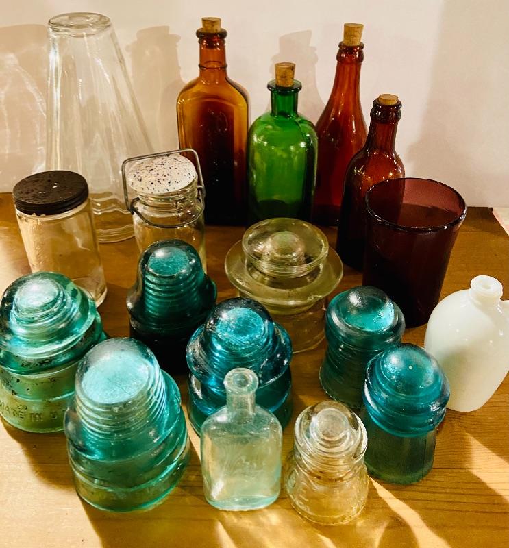 Lot 270: Unique Glass (Insulators, Bottles, Coffee Mill Top)