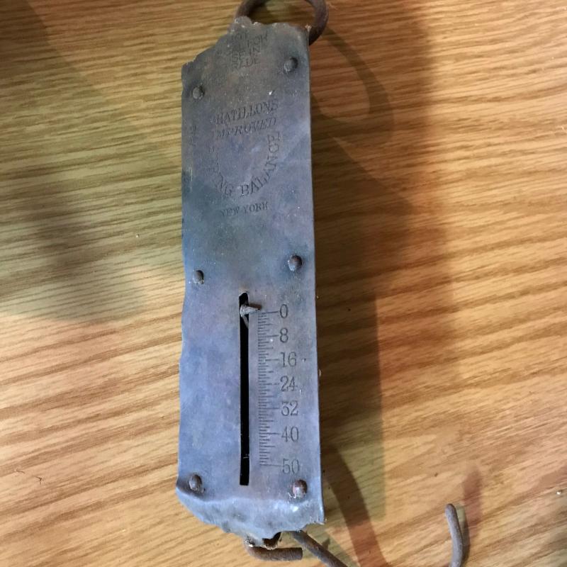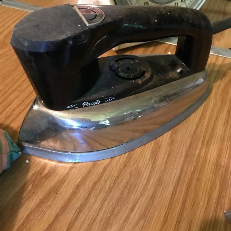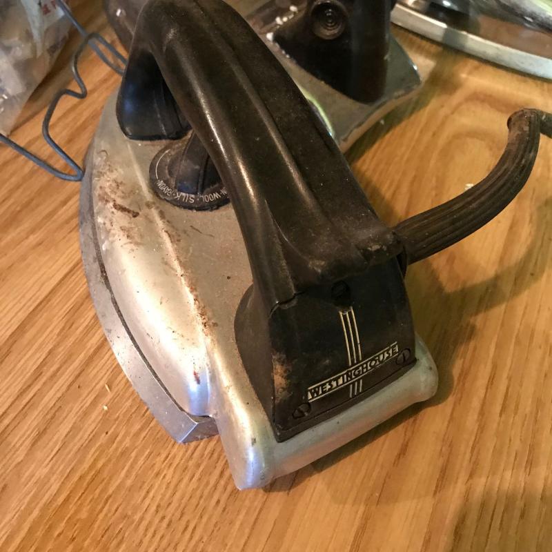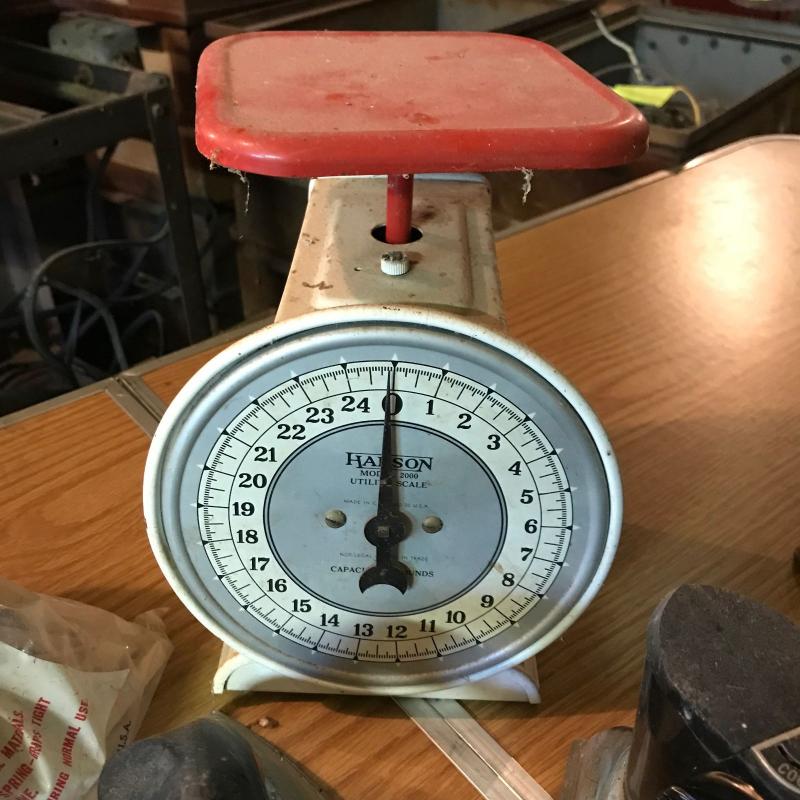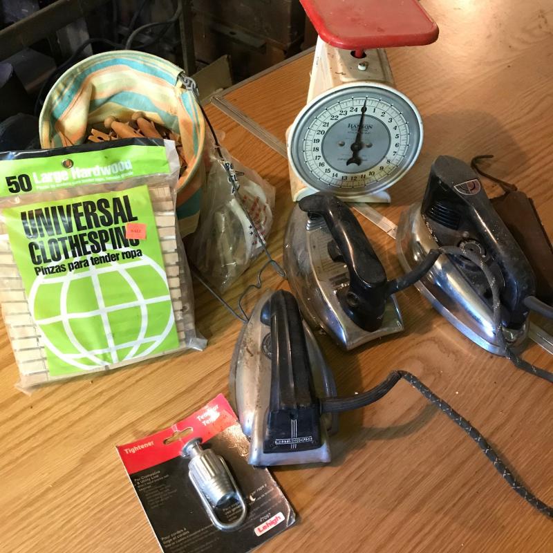 Hanson Model 2000 Utility Scale in white and red. Lot also includes 3 vintage irons. No shipping. Local pick up only.