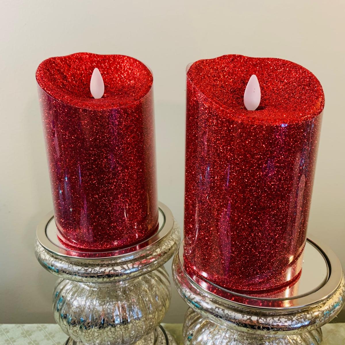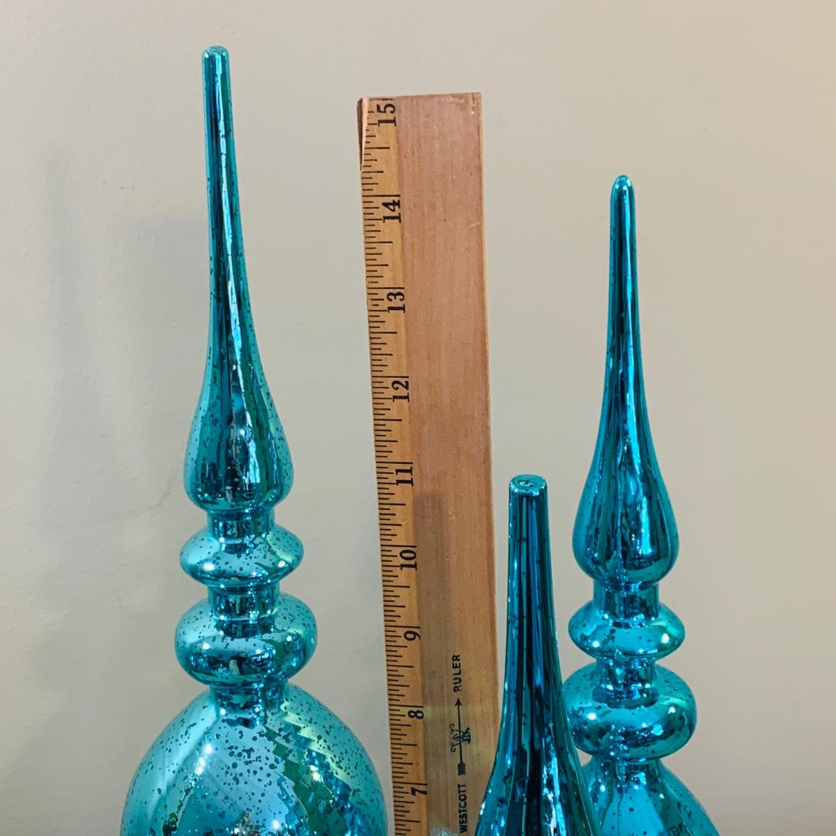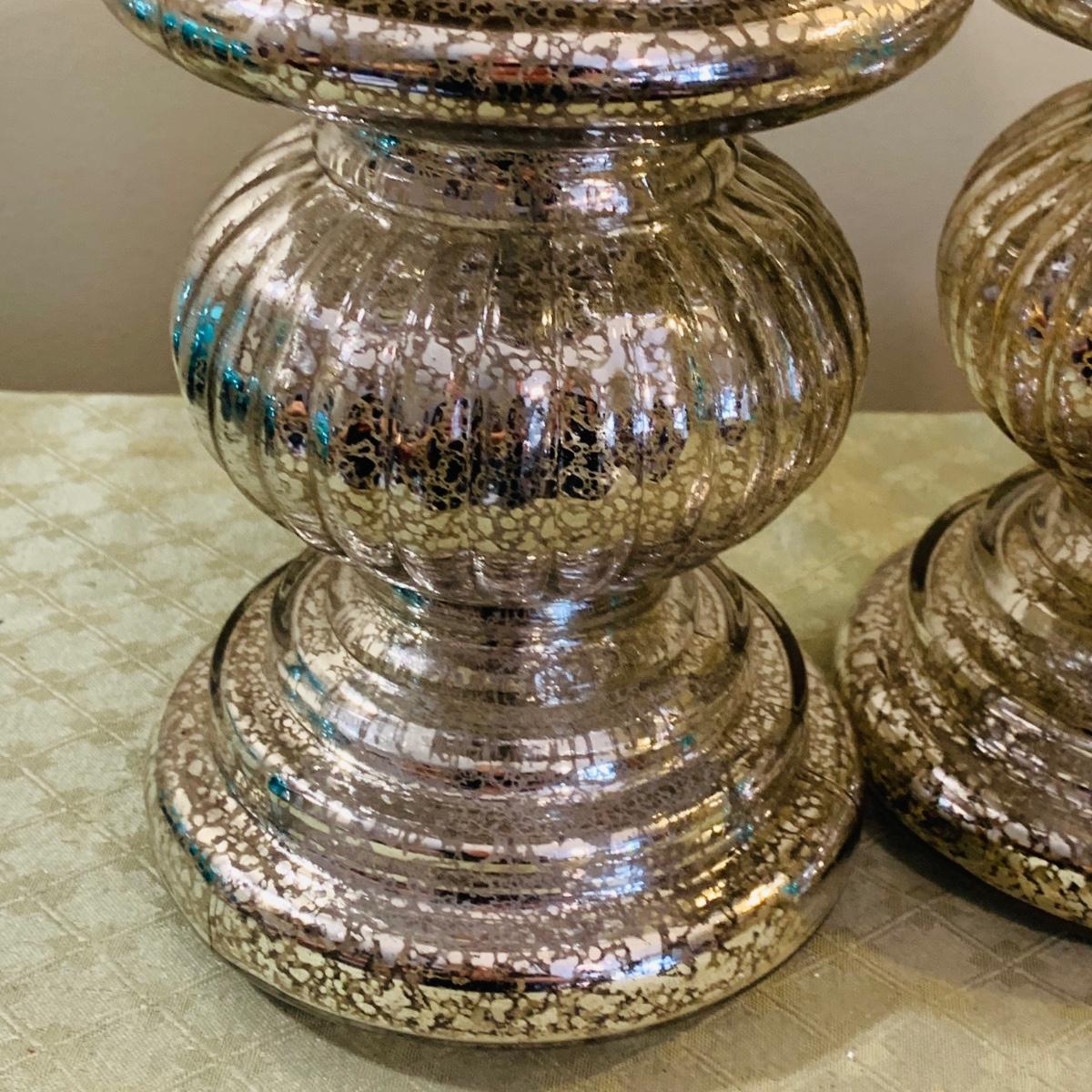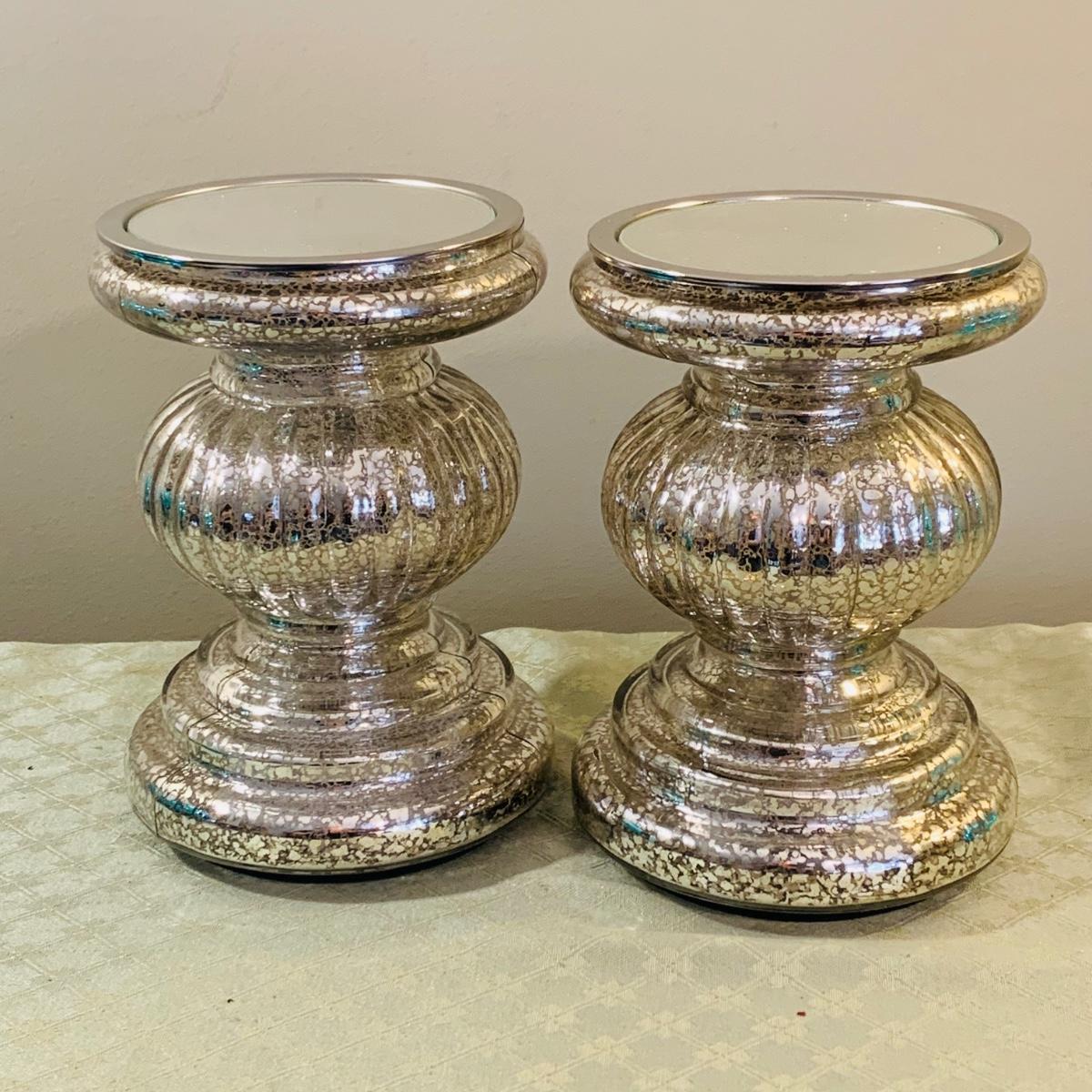 LOT 270R: Holiday Decor: Battery Operated Candles, Blue Mercury Glass Finials & Gazing Balls, Silver Mercury Glass Candle Holders