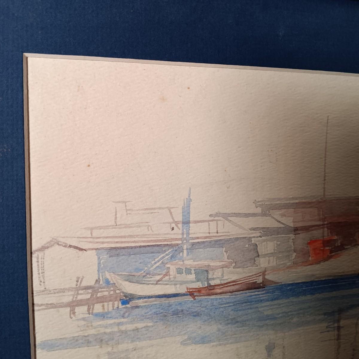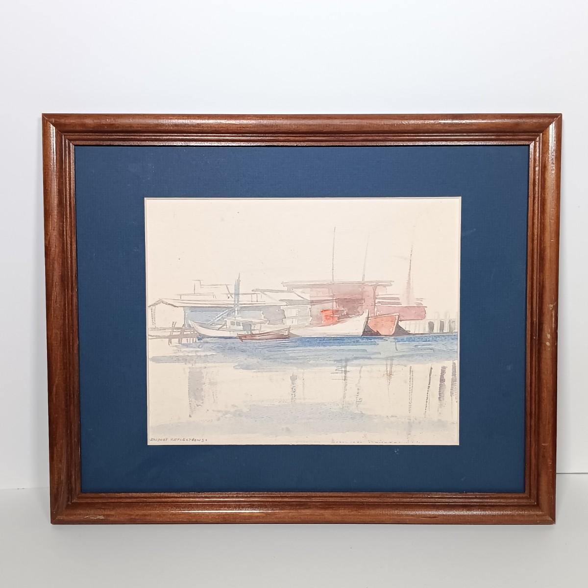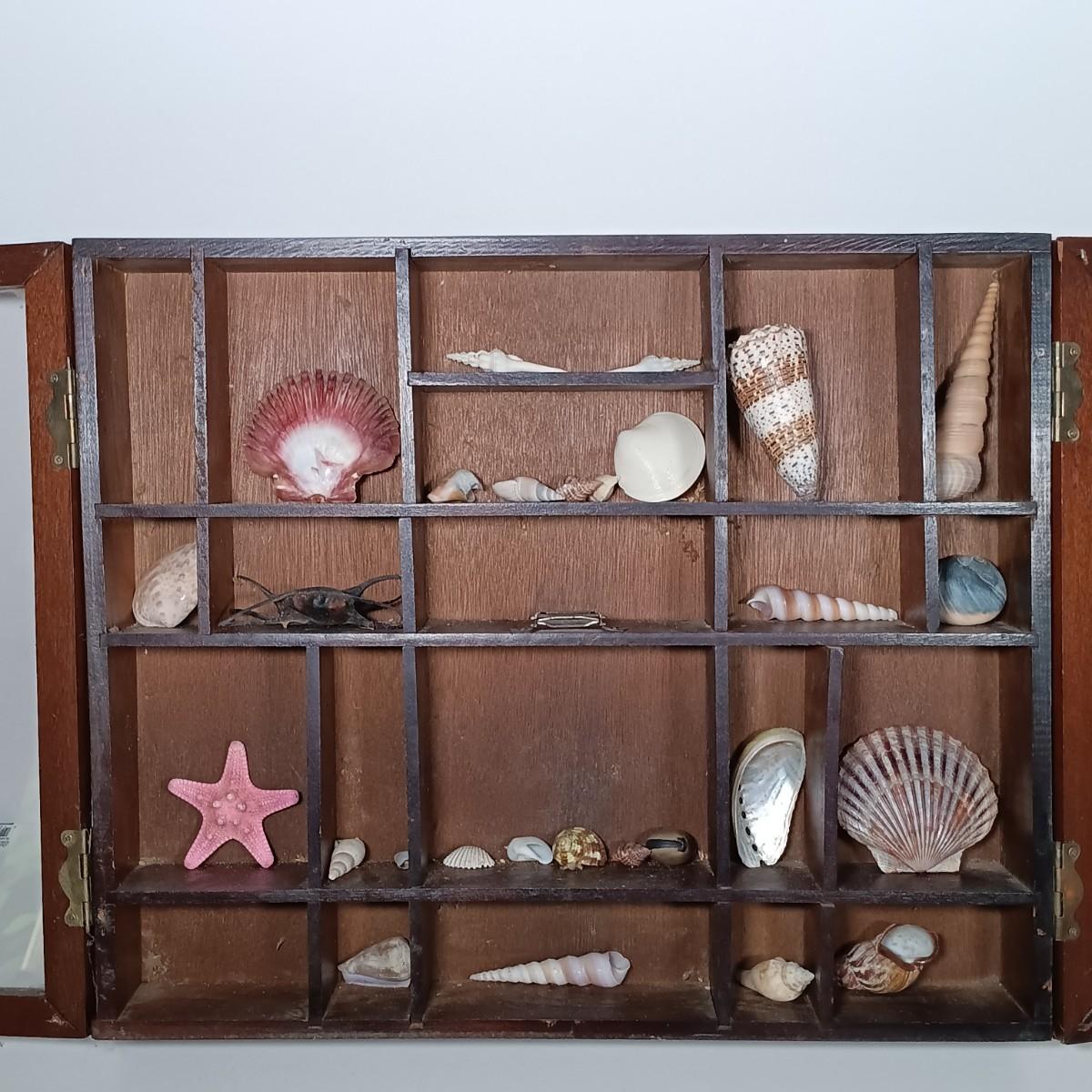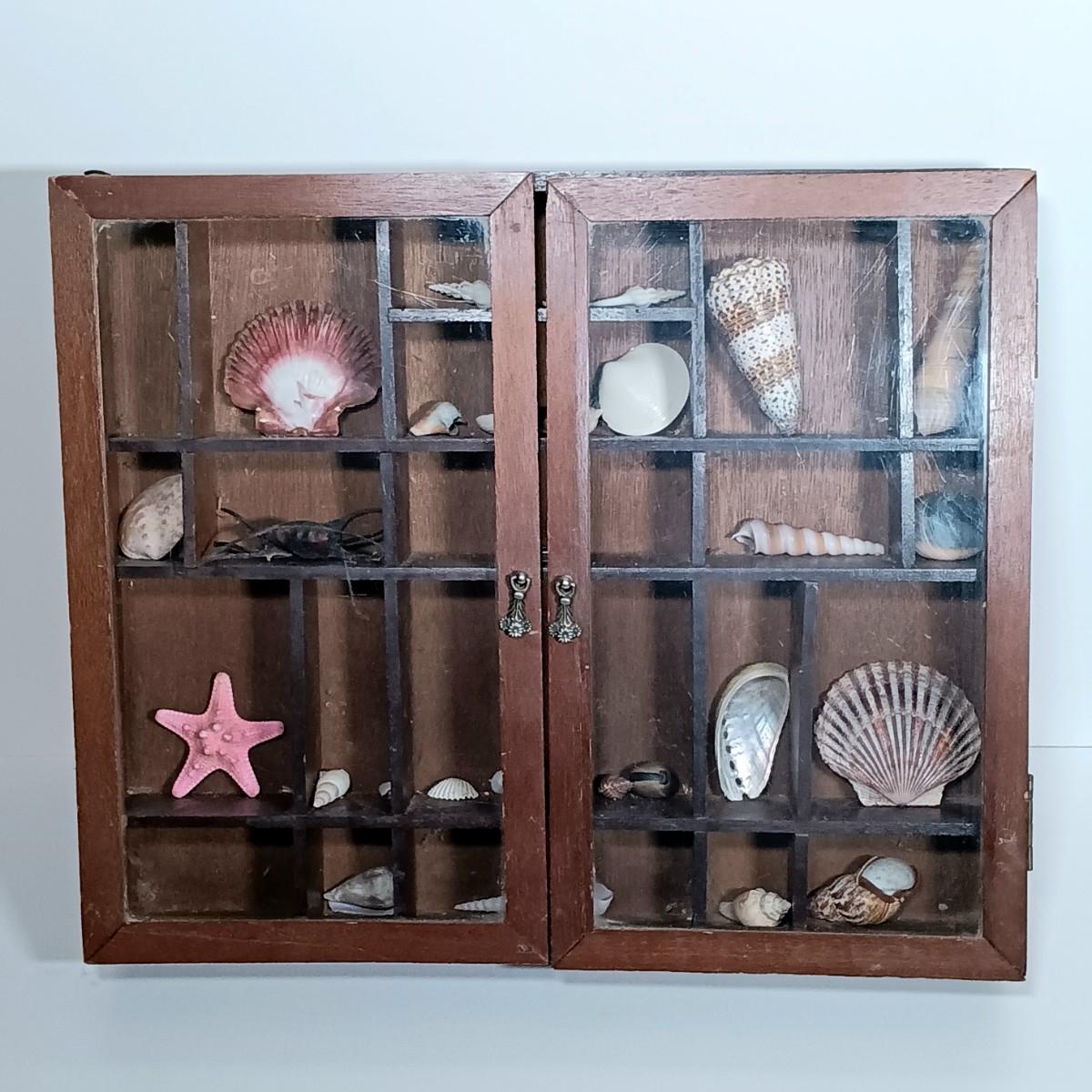 LOT 271: Watercolor by LiLo, Wood Art 'Lighthouse and Seagull', Shadow Box Containing Shells & More