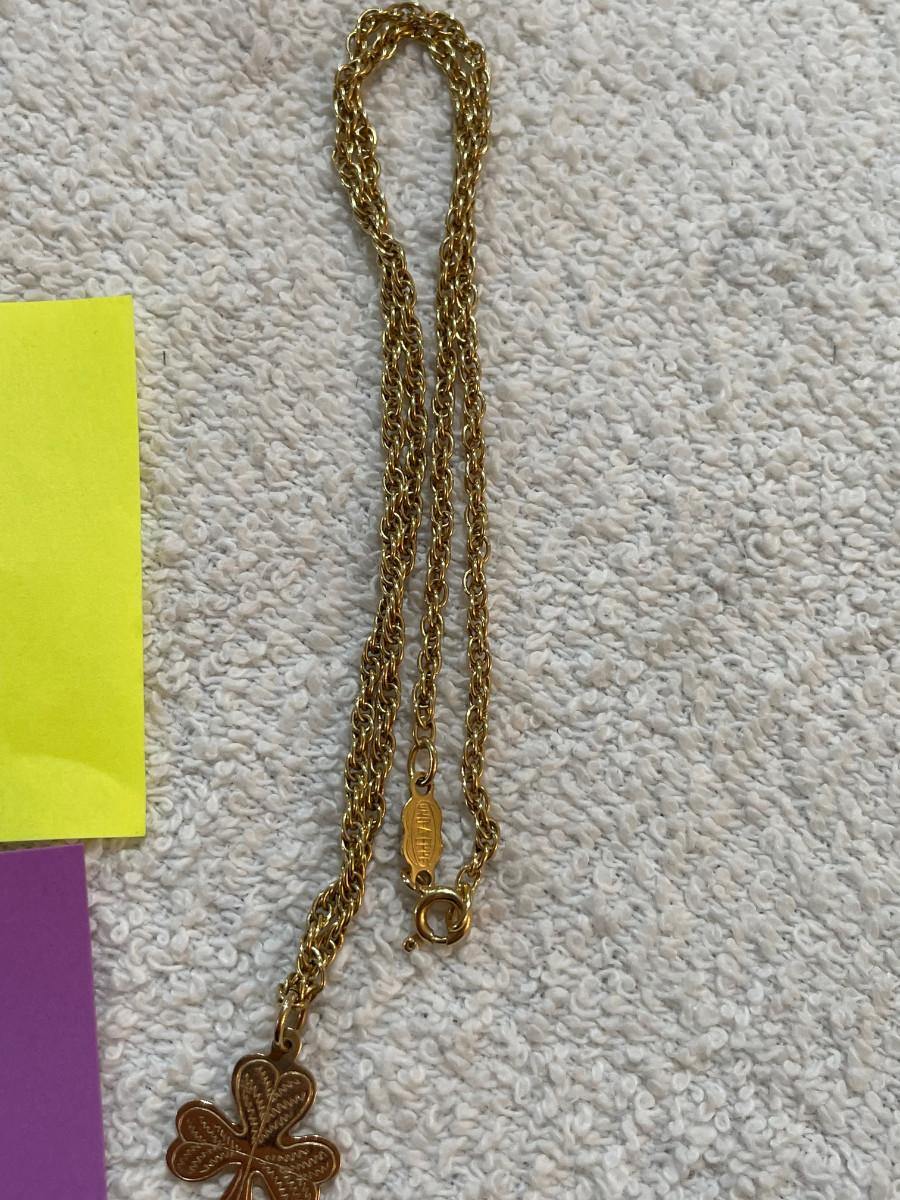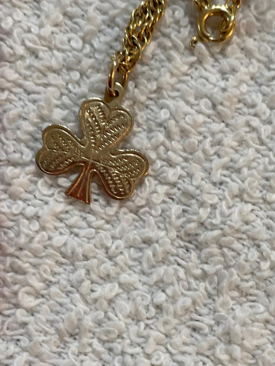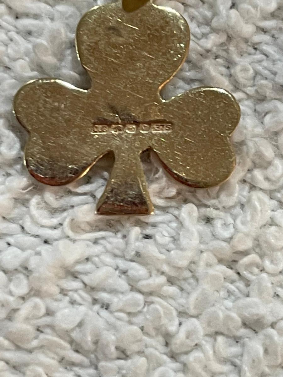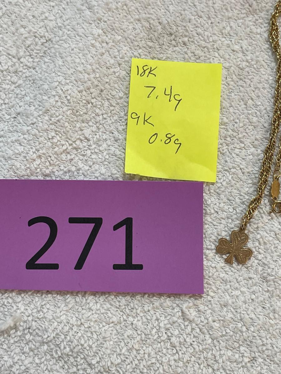 lot 271 Shamrock Pendant & chain 18K gold chain & 9K pendant.