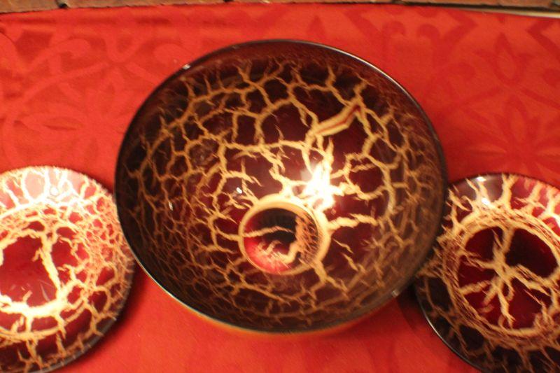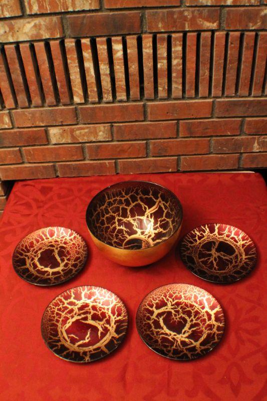 LOT #271: Red and Gold Crackle Design Salad Set 5 pcs.