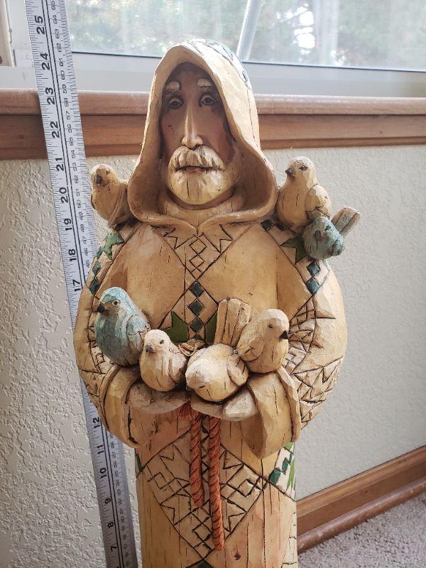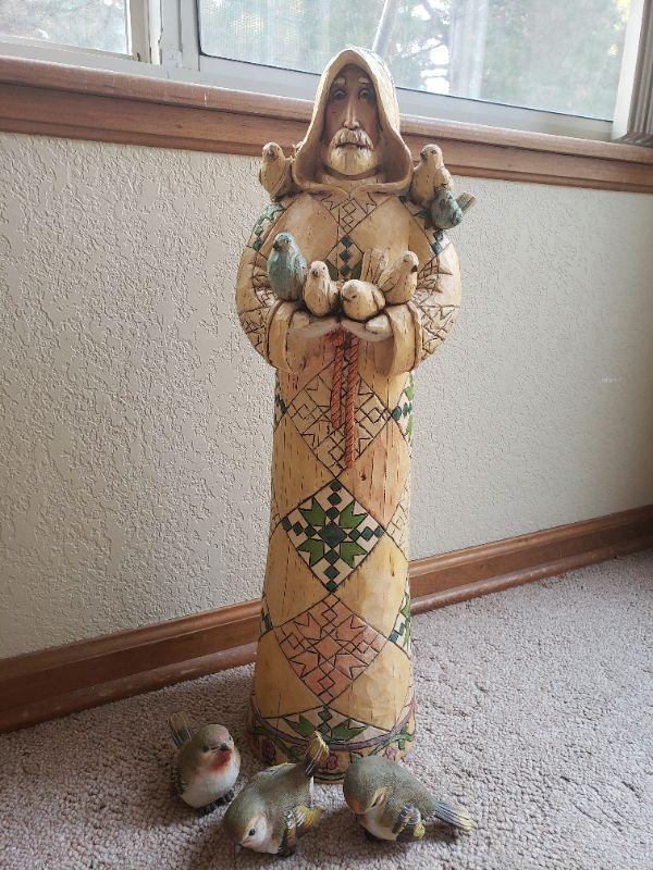 Lot 271: Garden Saint Statue with 3 Birds