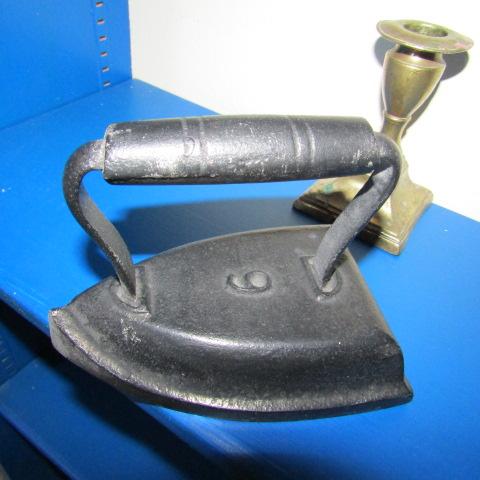 CAST CLOTHS IRON AND BRASS CANDLESTICK