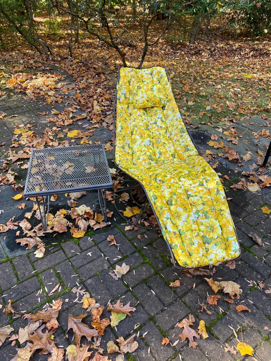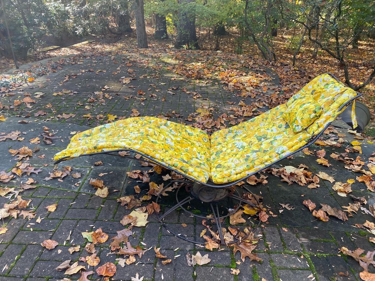 Vintage lounger is unstable and needs a repair. The base is being held together with a clamp. Metal is heavy. Perfect up cycle project. Lot includes metal side table. The pictures show condition, measurements if taken, and what is included in the lot. Due to the large amount that we photograph and the time frame, we are not always able to take measurements. All items unless noted, are pre-owned and have been used. If you purchased furniture, you must bring help. We do not allow one person to carry large furniture out on their own. Bring help, tools and a truck for the safety of our client’s homes, and your personal safety. Company policy. Thank you.