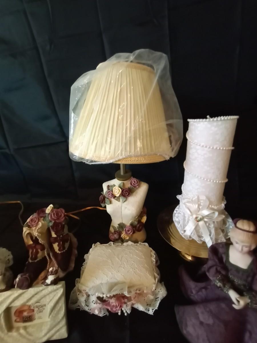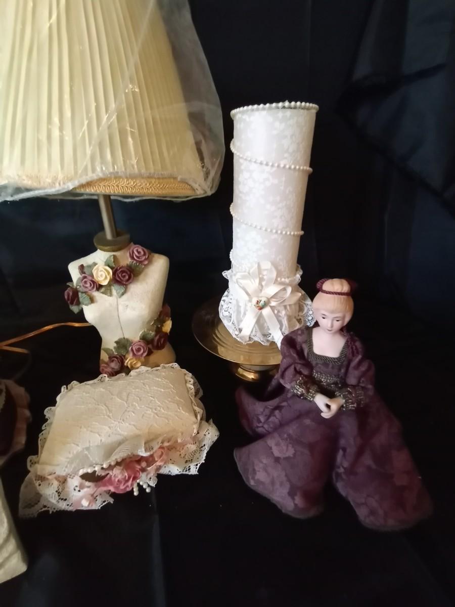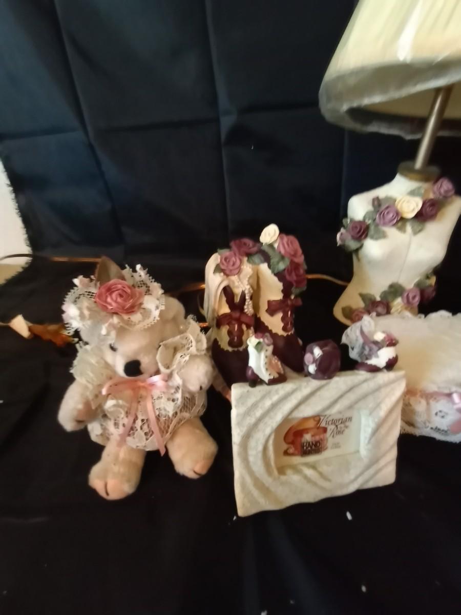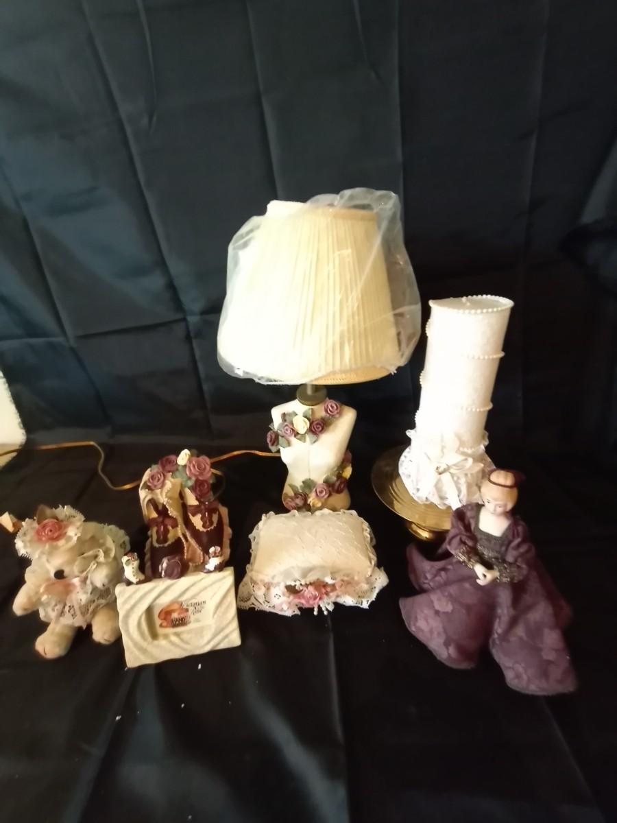 LADIES SMALL TABLE LAMP AND DECFRAME=CANDLE-BEAR AND MORE