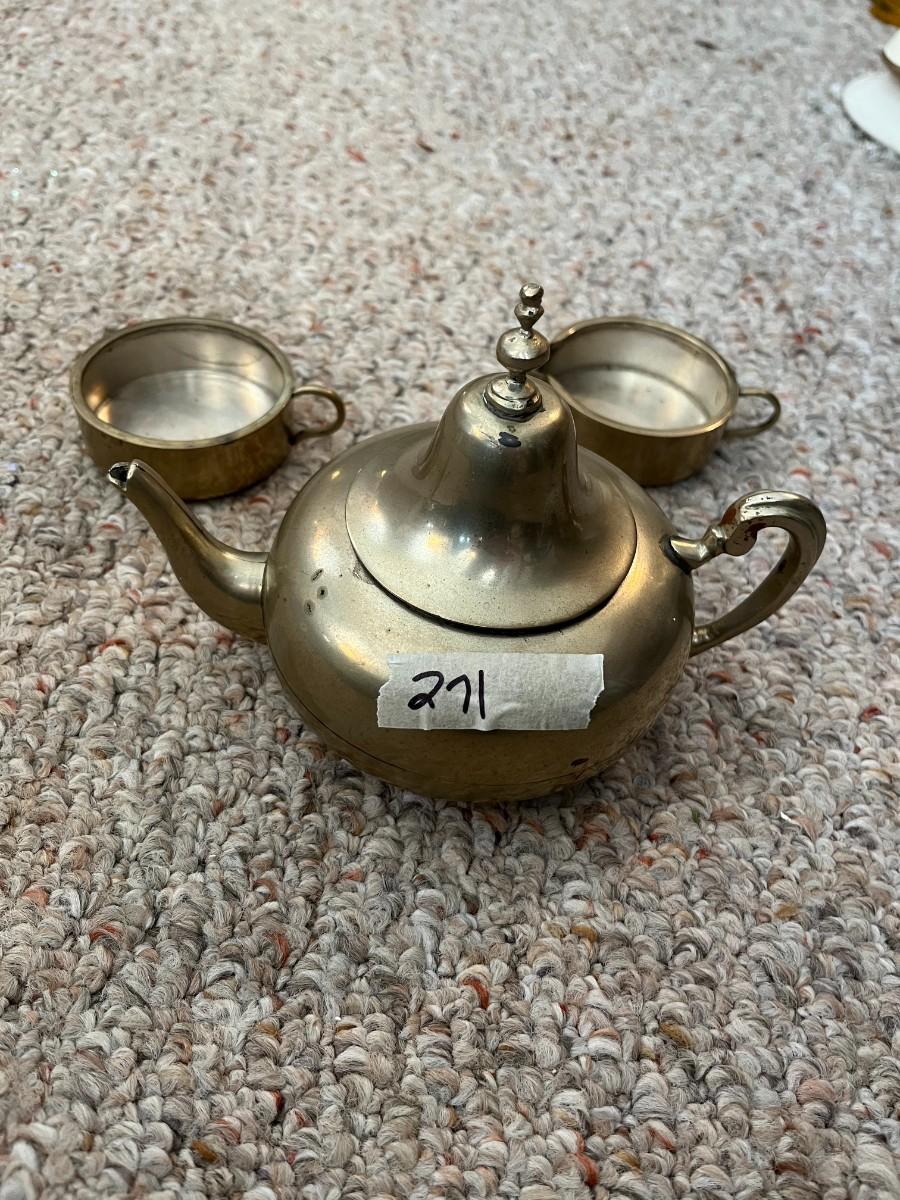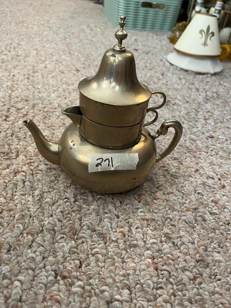 4 Piece Set Tea Pot Lid Bell Sugar Creamer Stacked - Lot 271