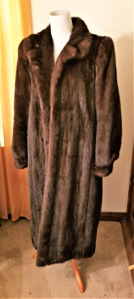This coat was purchased new in 1986 from Kreegers (we have the original receipt) on sale for approximately 1500.00 - the appraisal with it claims it is worth $4000.00. Single owner, well kept, great condition. Would best fit someone who is a 10-14. Pelts are soft and supple, lining good, no weird odors, etc. Nonsmoking home. You can wear this with pride. Deep brown color. Carnival season is coming (hopefully).