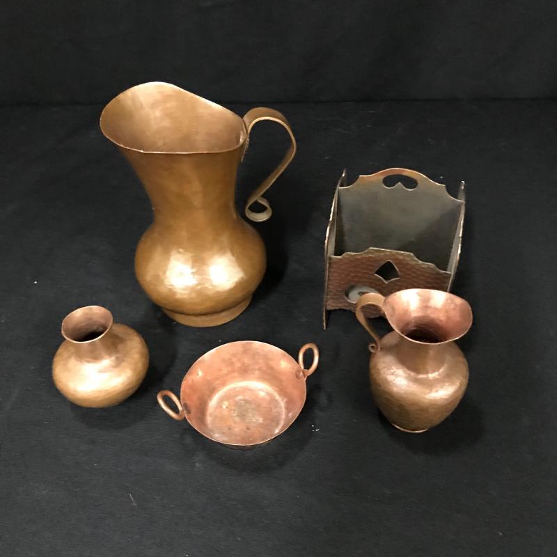 Five miniature copper collectibles, largest measuring approx. 4.25” tall. Shipping available or local pickup in Asheville, NC.