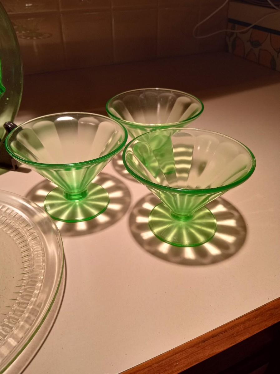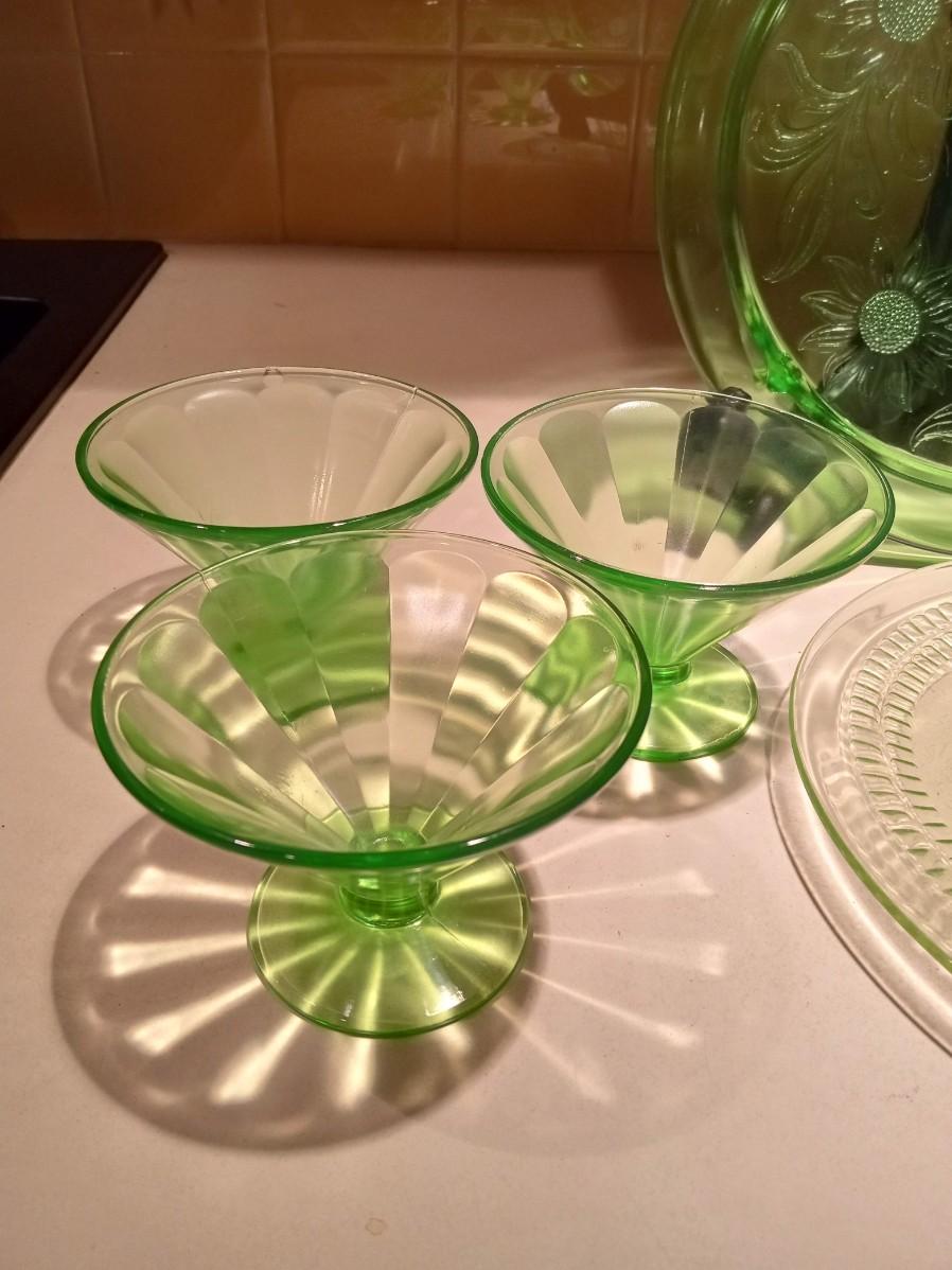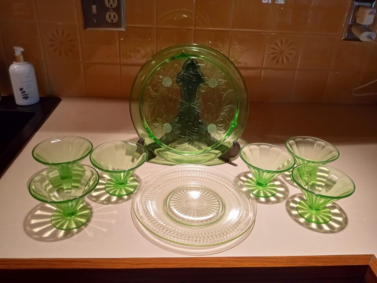 LOT 271  GREEN DEPRESSION GLASS SHERBERT CUPS AND SERVING PLATES
