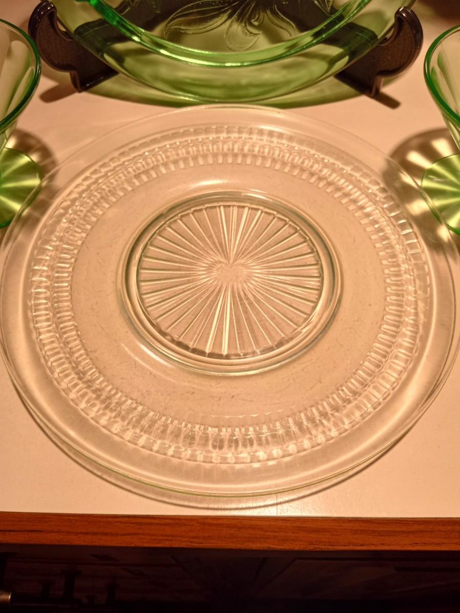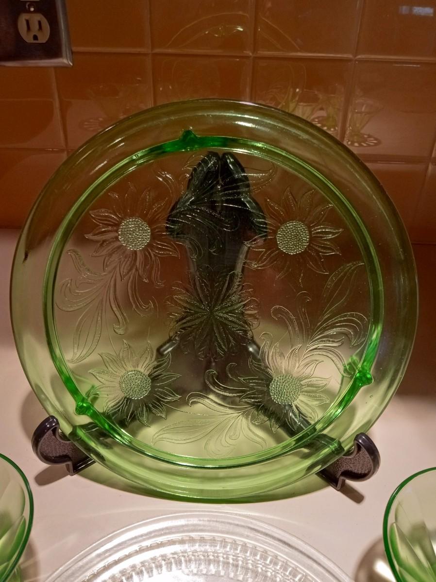LOT 271 GREEN DEPRESSION GLASS SHERBERT CUPS AND SERVING PLATES