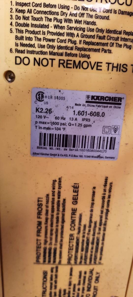 Lot 271 Karcher Pressure Washer (600 PSI) w/ Accessories