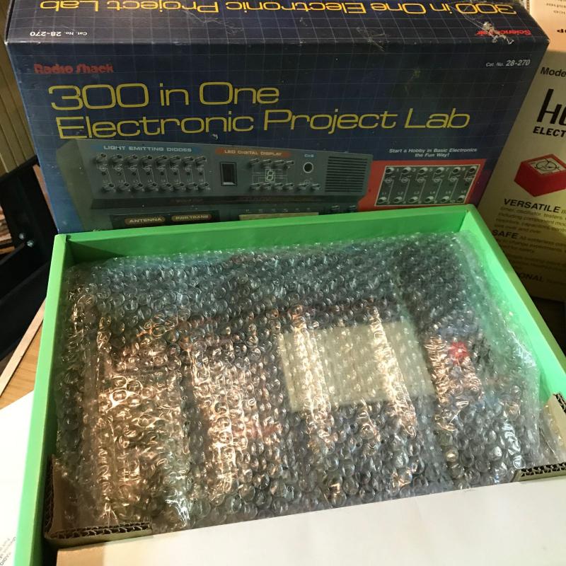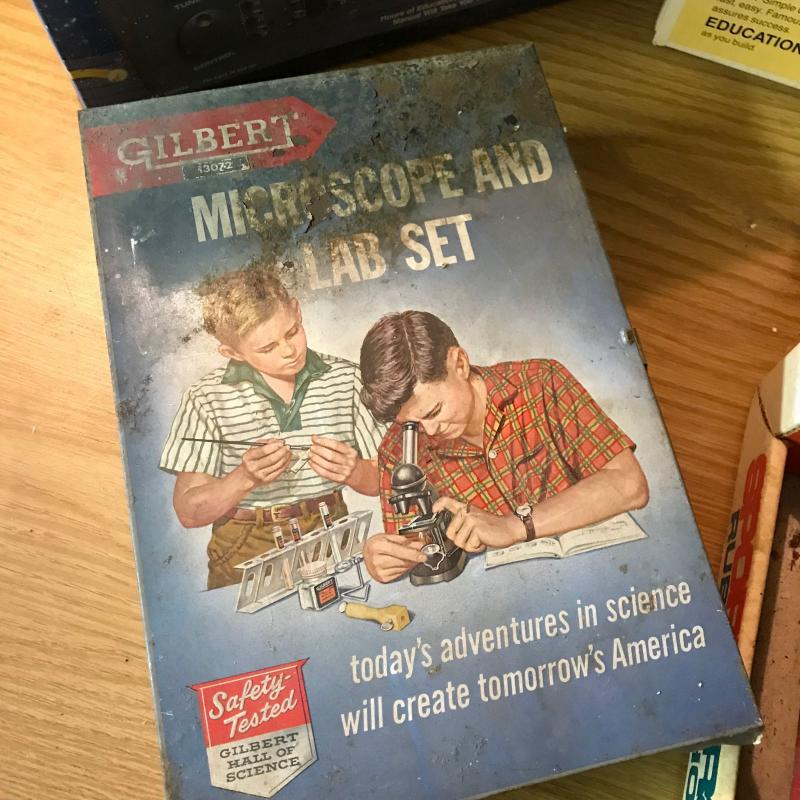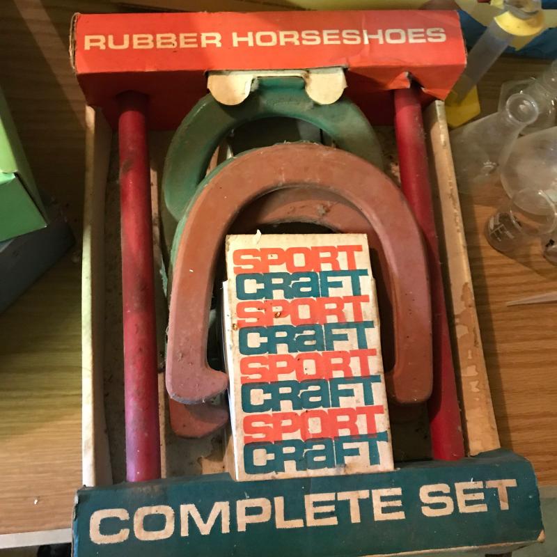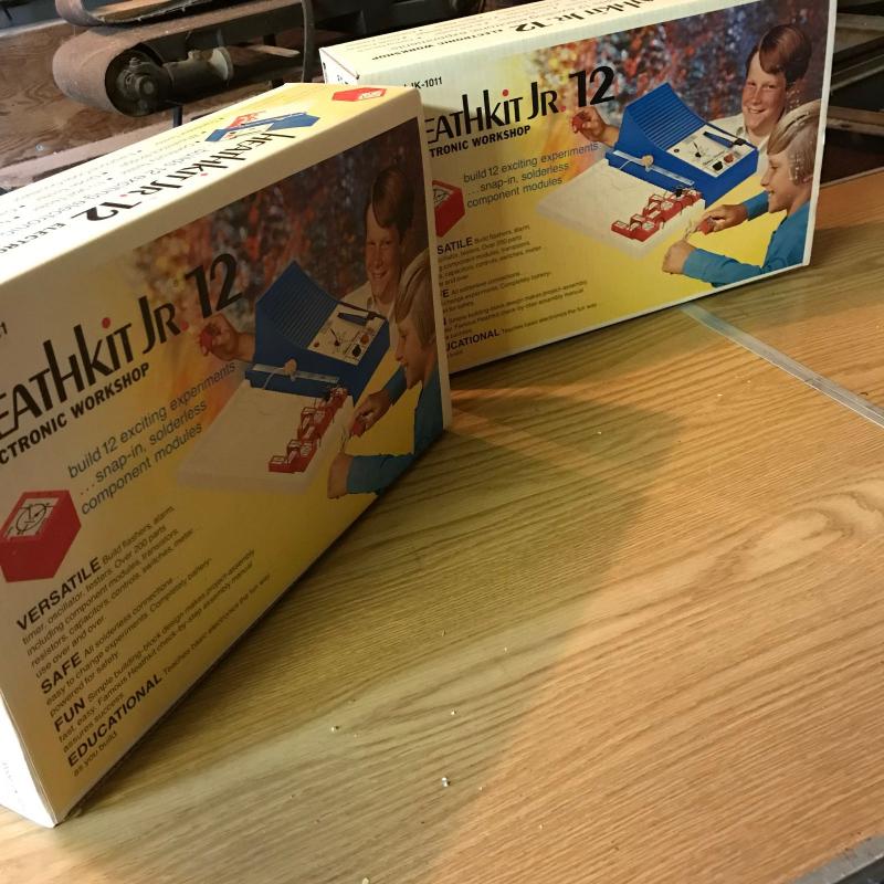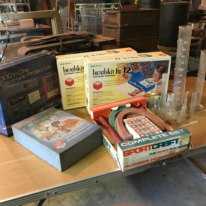 Kid Science toys includes 2 Heathkit Jr. Electronic Workshop in box, Electronic Project Lab in Box, Microscope and Lab Set and some beakers for experiments. Also includes Rubber Horseshoe game. No shipping. Local pick up only.