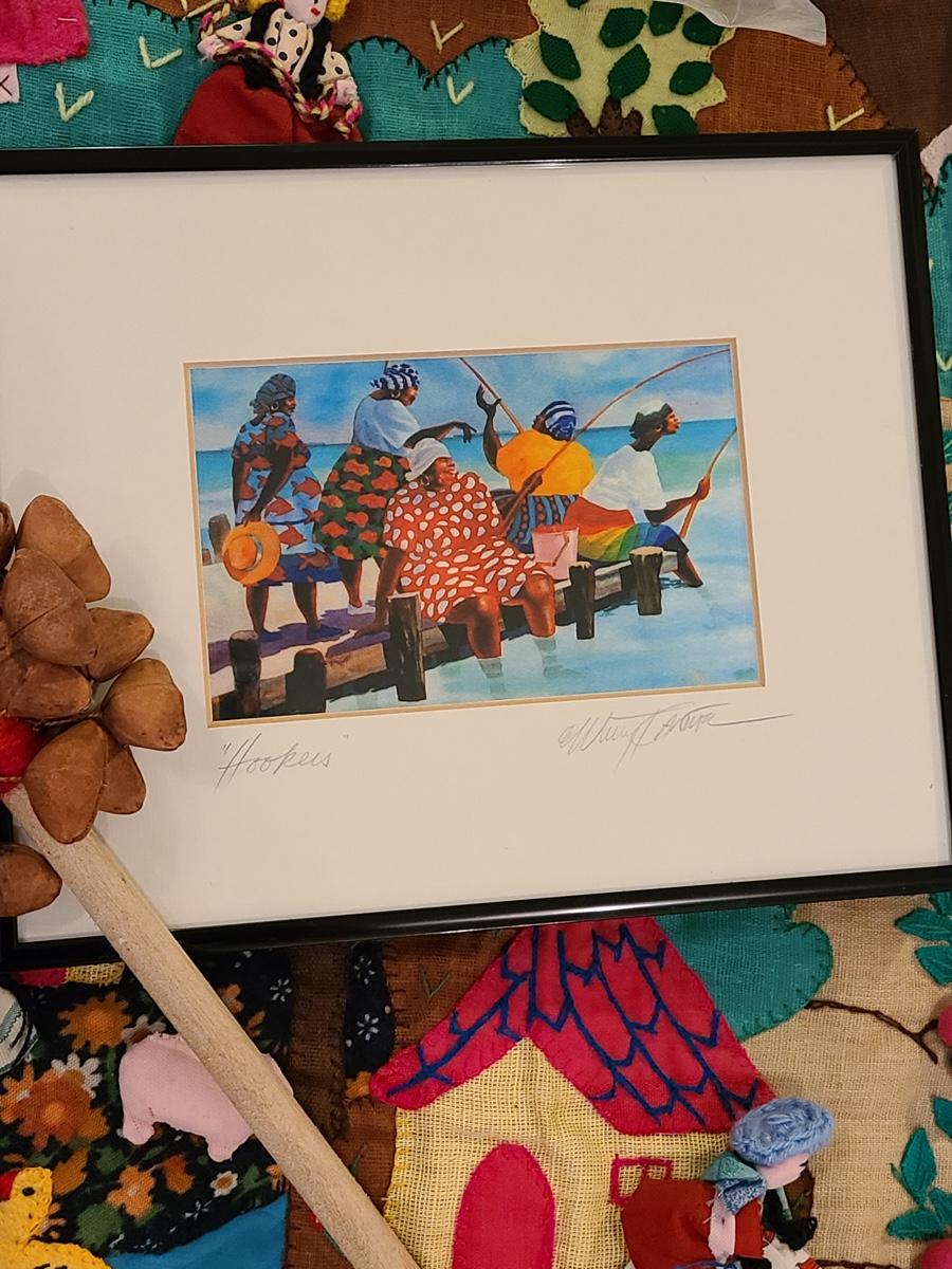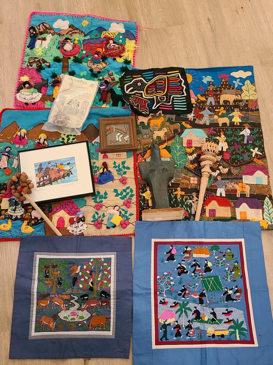This is such a fun lot of mixed textiles from different cultures, a fun "Hookers" signed print, a handmade art sculpture, and more. Please see all pictures as they are the best representation of the items. The pictures show condition, measurements if taken, and what is included in the lot. Due to the large amount that we photograph and the time frame, we are not always able to take measurements. All items unless noted, are pre-owned and have been used. If you purchased furniture, you must bring help. We do not allow one person to carry large furniture out on their own. Bring help, tools and a truck for the safety of our client’s homes, and your personal safety. Company policy. Thank you.