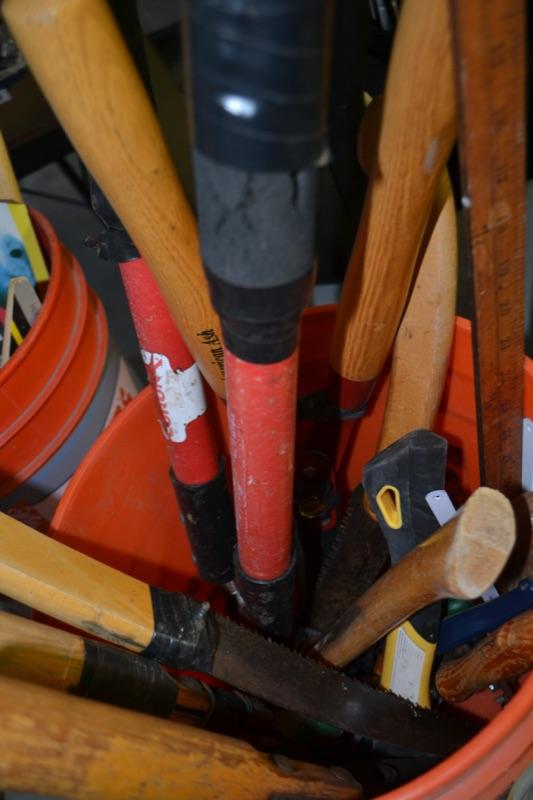 BUCKET OF YARD AND GARDEN TOOLS