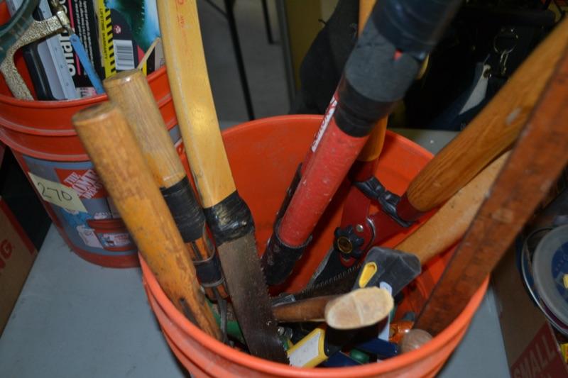 LOT 272. BUCKET OF YARD AND GARDEN TOOLS