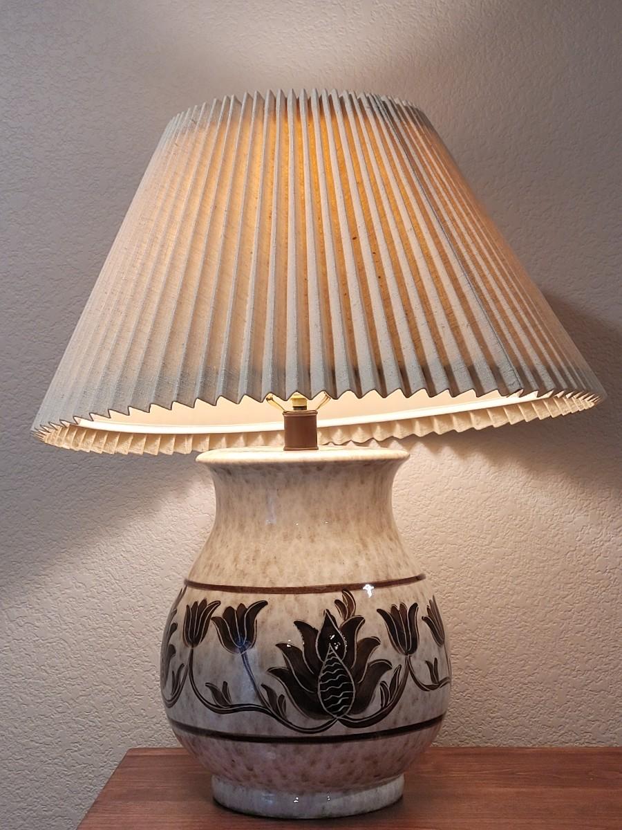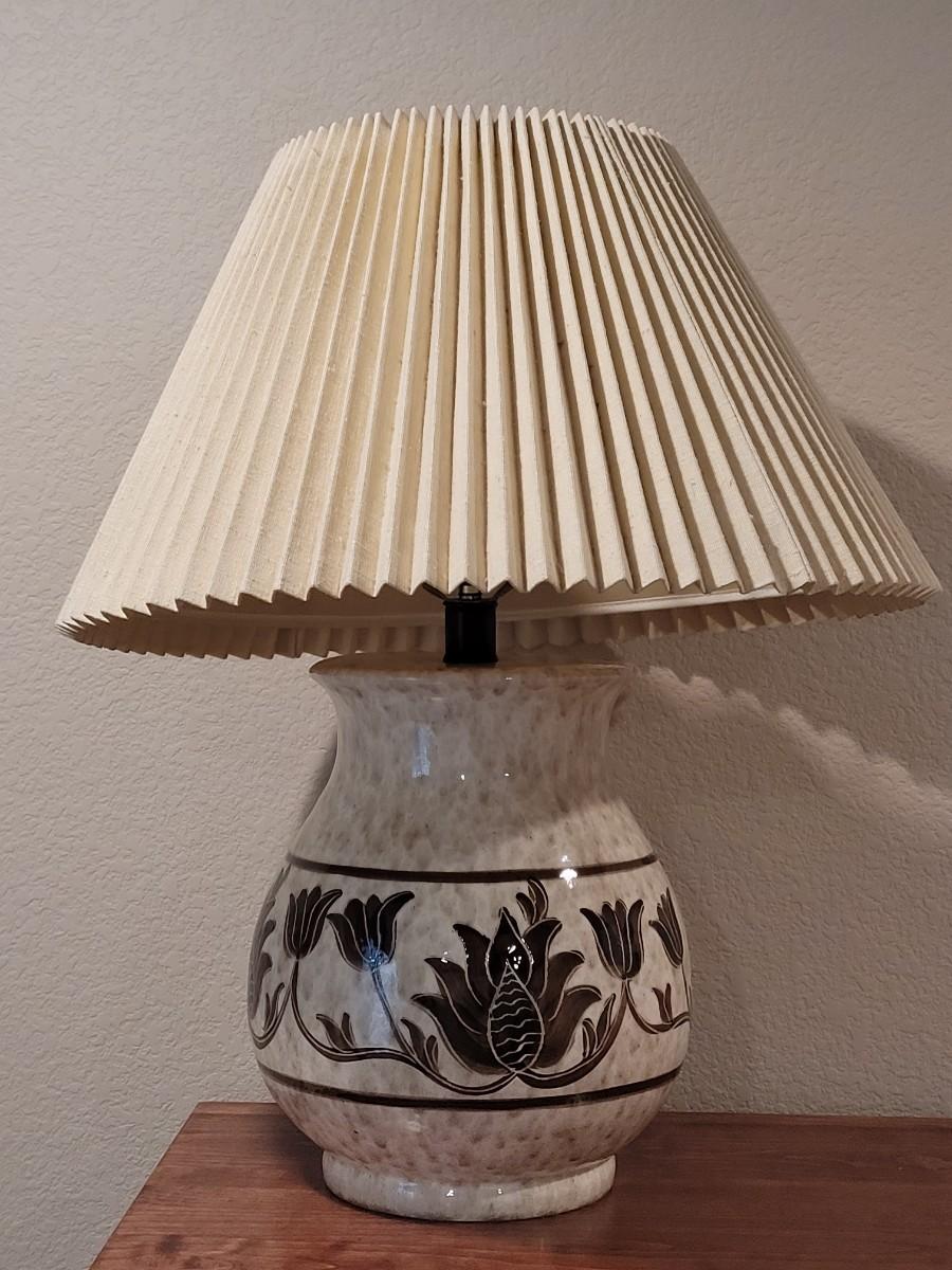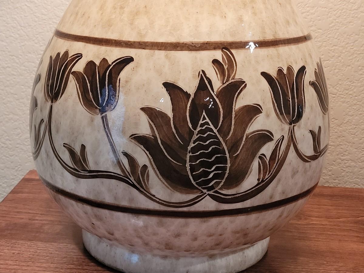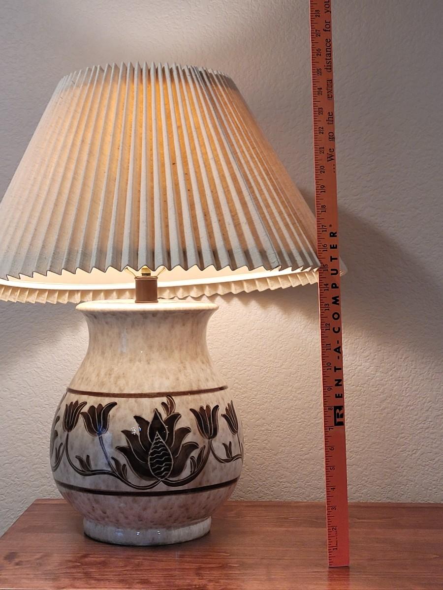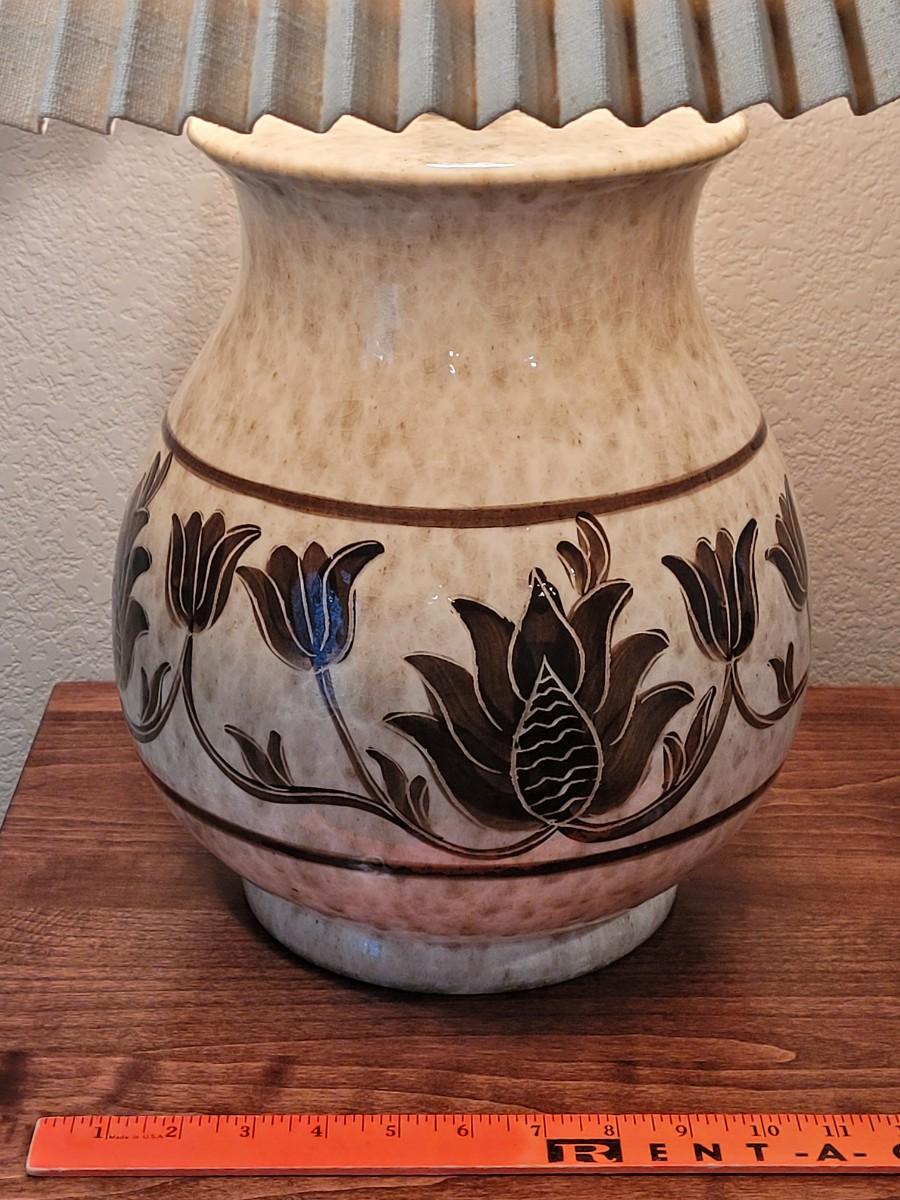 Lot 272: Ceramic Lamp with Brown Floral Design