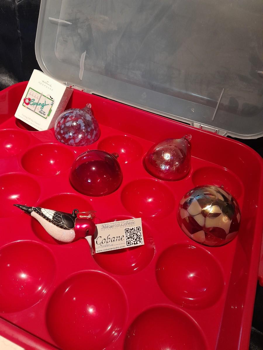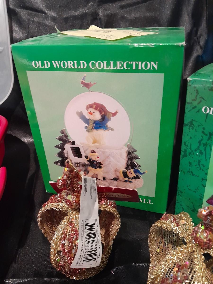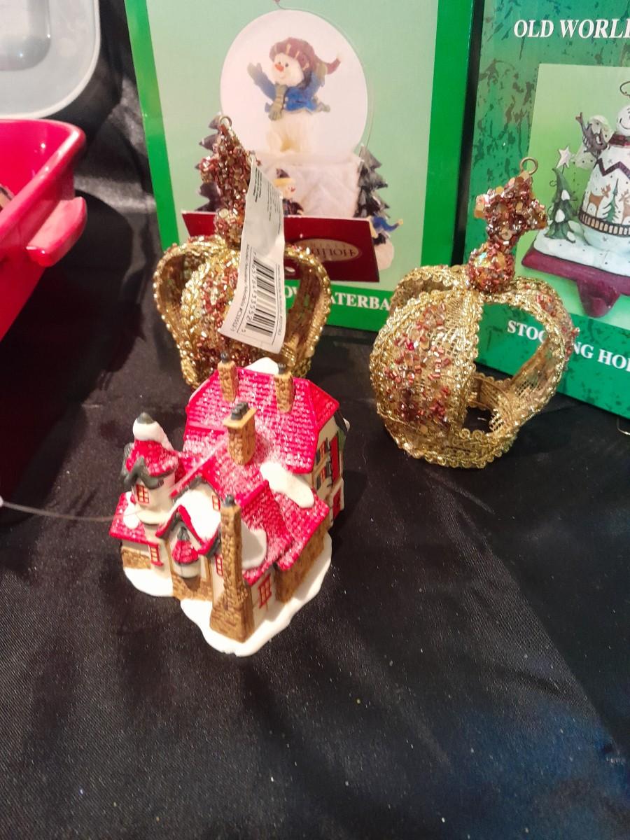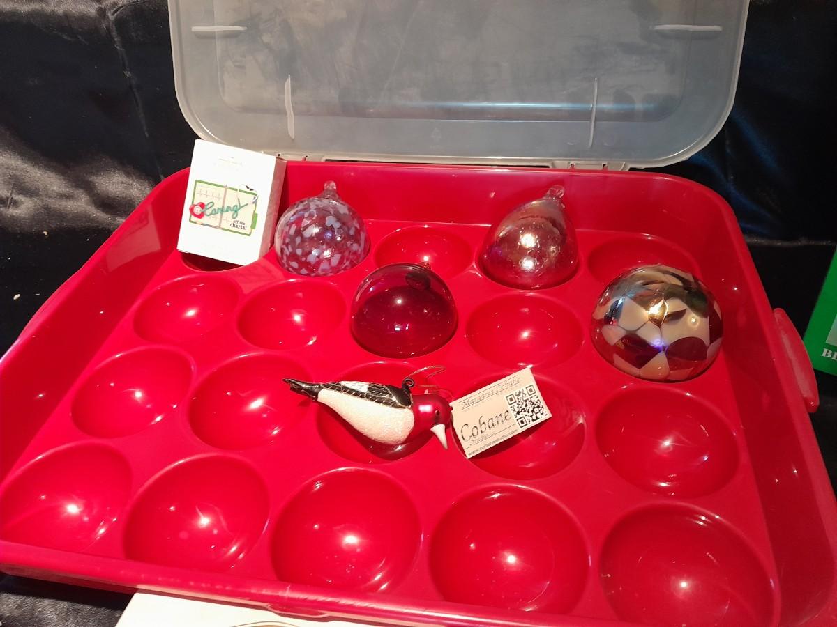 HALLMARK CARING OFF THE CHARTS NURSE ORNAMENT, CHRISTMAS BULBS, BULB STORAGE (cracked lid as shown), OLD WORLD COLLECTION SNOWMAN SNOWGLOBE (music doesn't work), AND MORE